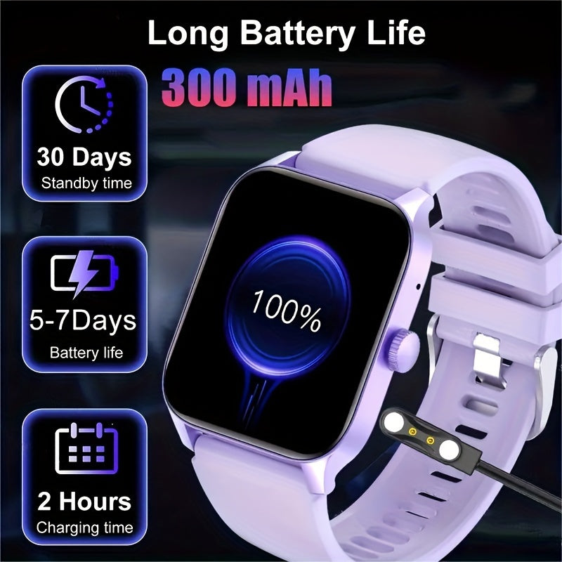 ساعة ذكية بشاشة لمس كاملة 1.83 بوصة، تدعم مكالمات لاسلكية، أكثر من 100 وضع رياضي، وأكثر من 100 قرص، وتحكم صوتي بالذكاء الاصطناعي، وتشغيل موسيقى، ومتتبع لياقة بدنية ذكي، متوافقة مع هواتف آيفون وأندرويد.