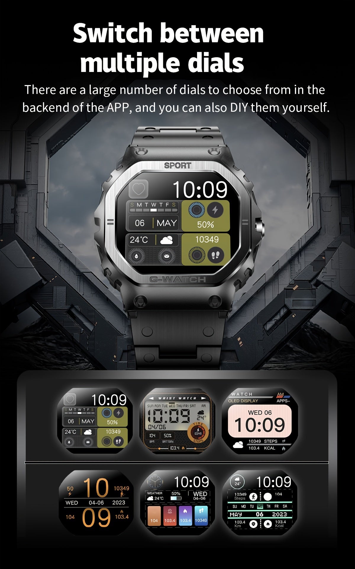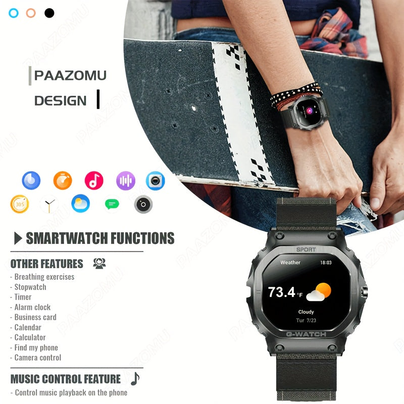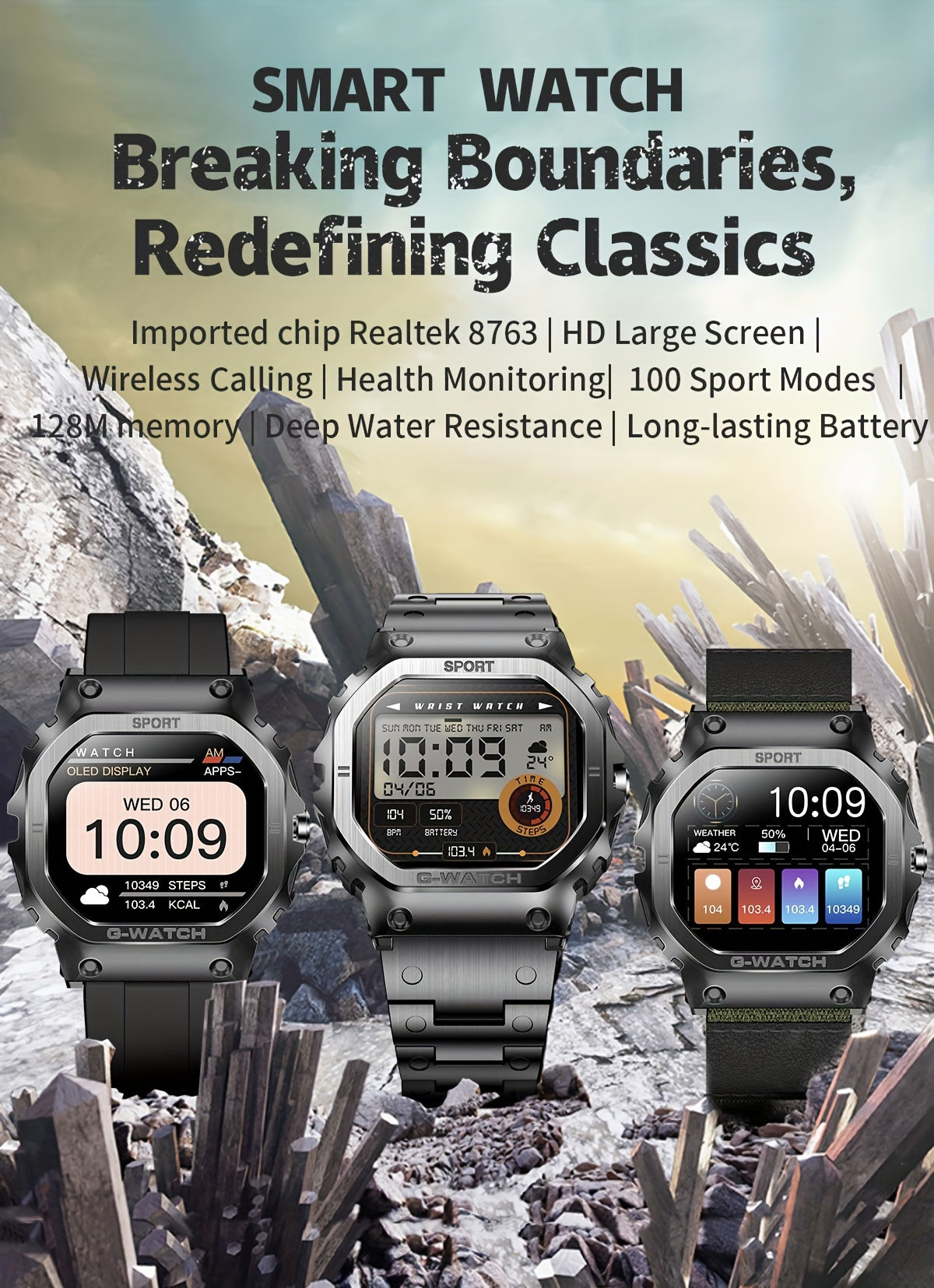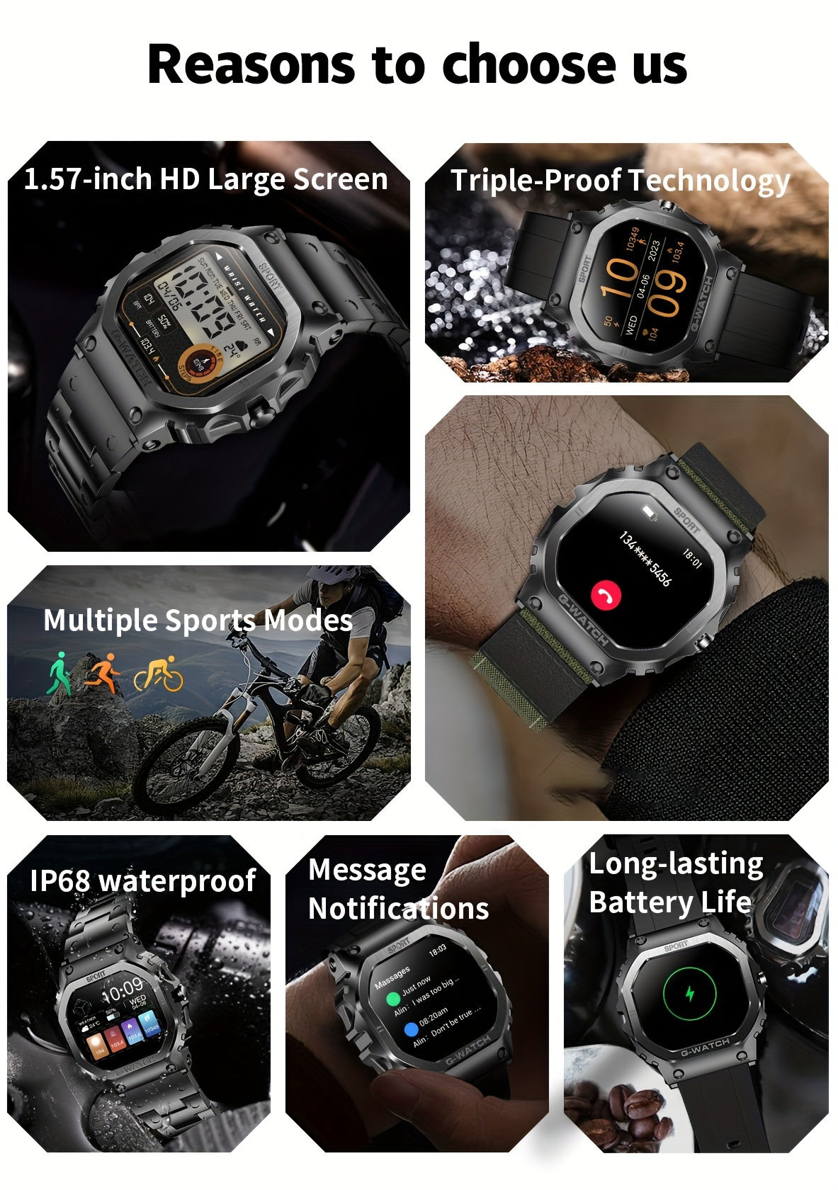 ساعة ذكية جديدة للرجال مقاس 1.57 بوصة رياضية خارجية مع إمكانية الرد على المكالمات/إجرائها متوافقة مع هواتف iPhone وAndroid طراز G-SHOCK
