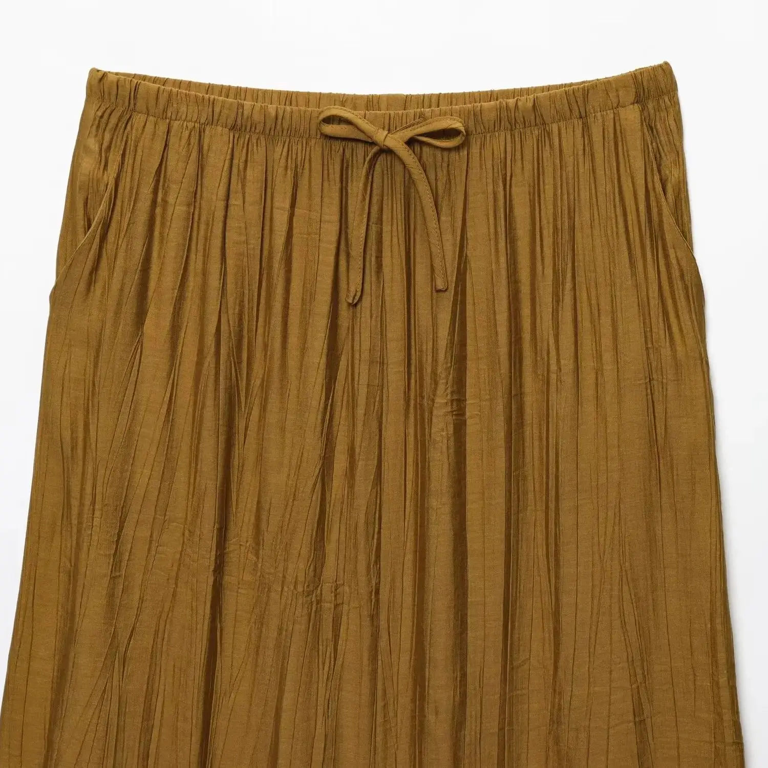 تنورة ميدي أنيقة مزخرفة بفيونكة على الطراز الأوروبي والأمريكي لعام 2025 للسيدات في صيف جديد.