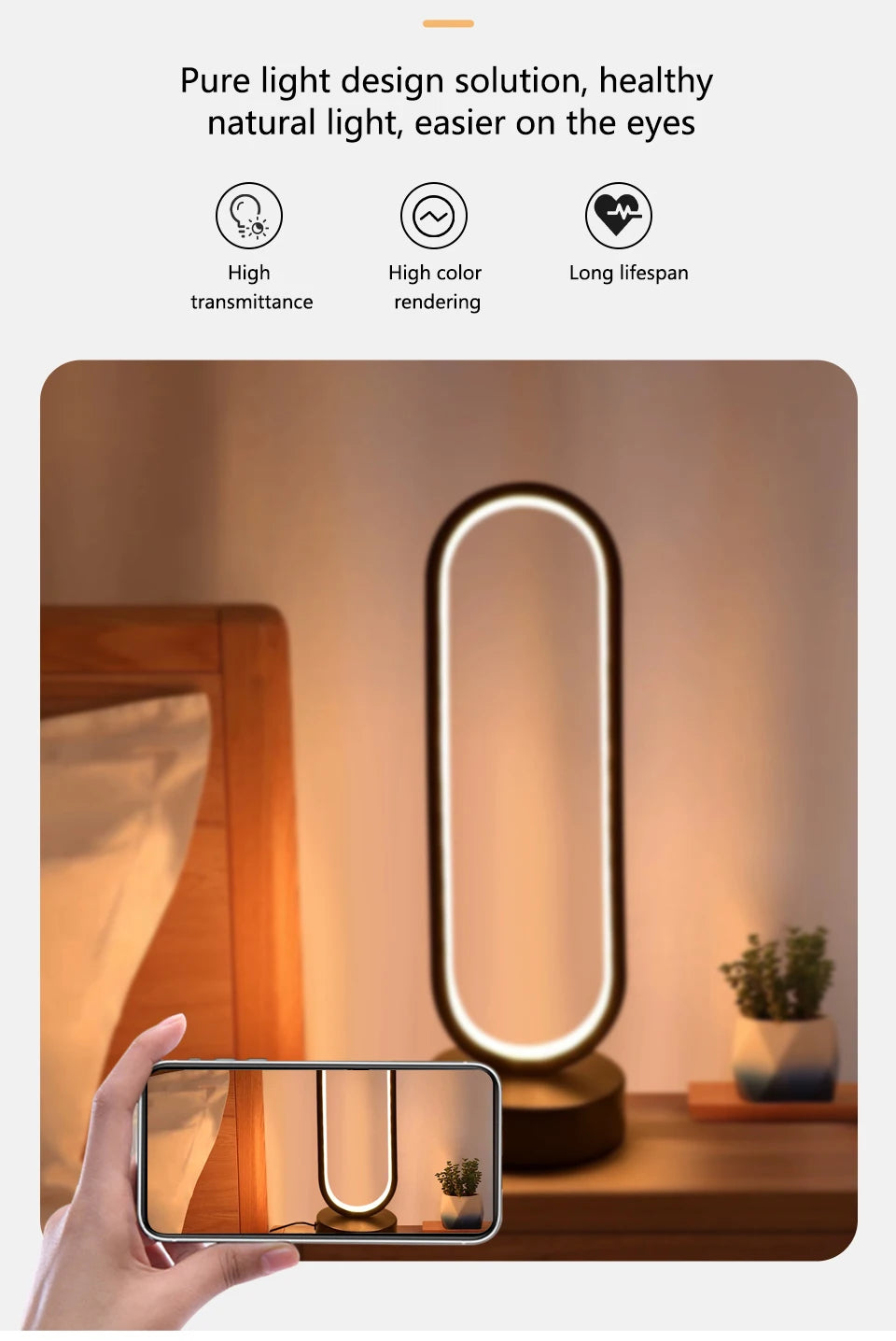 مصباح ليلي على شكل حلقة لغرفة النوم وغرفة المعيشة ومصباح سرير قابل للتعتيم بثلاثة ألوان ومصباح ليلي LED وإضاءة محيطة وطاولة بجانب السرير وملحقات الطاولة