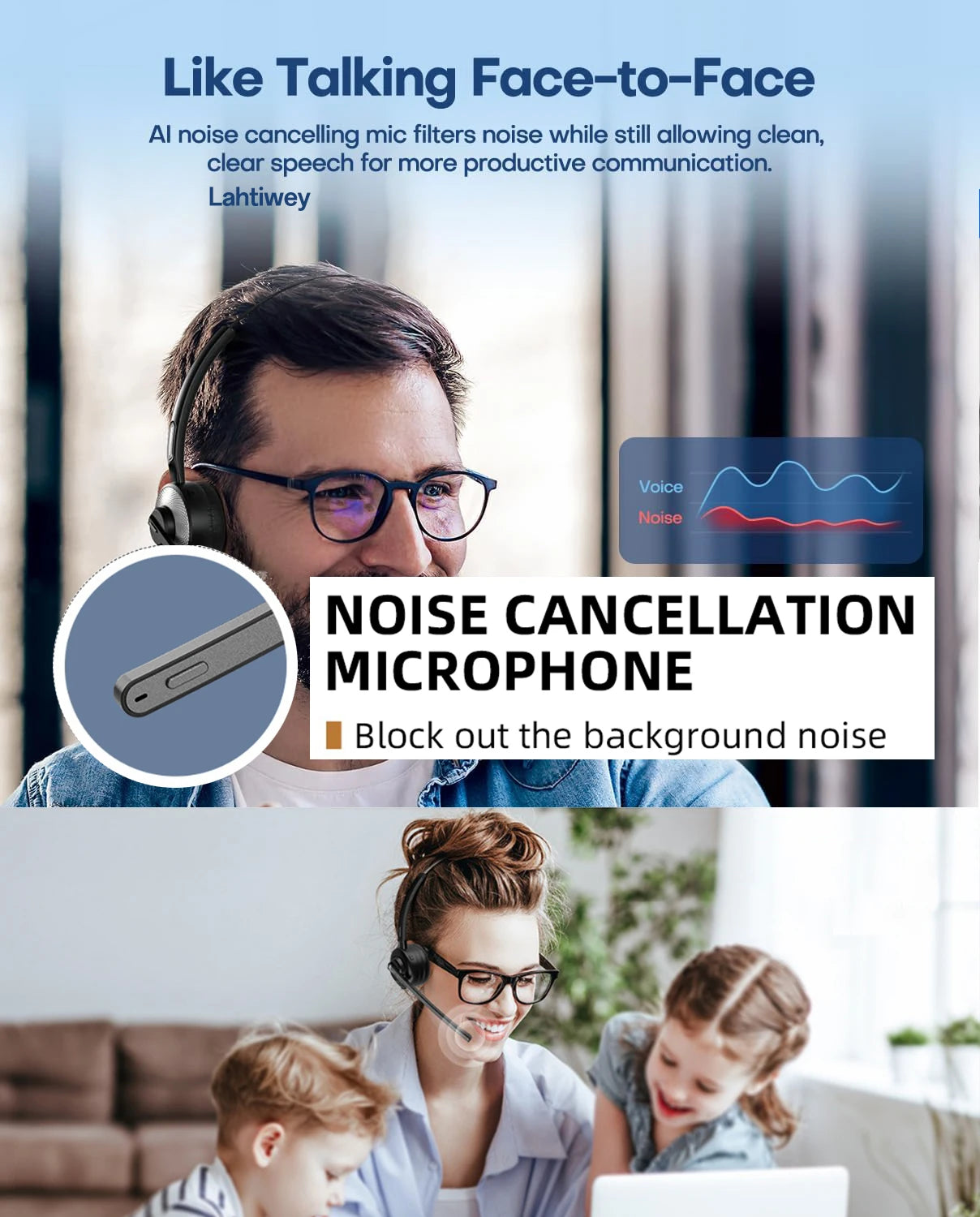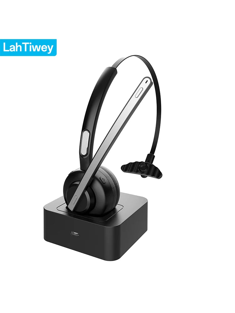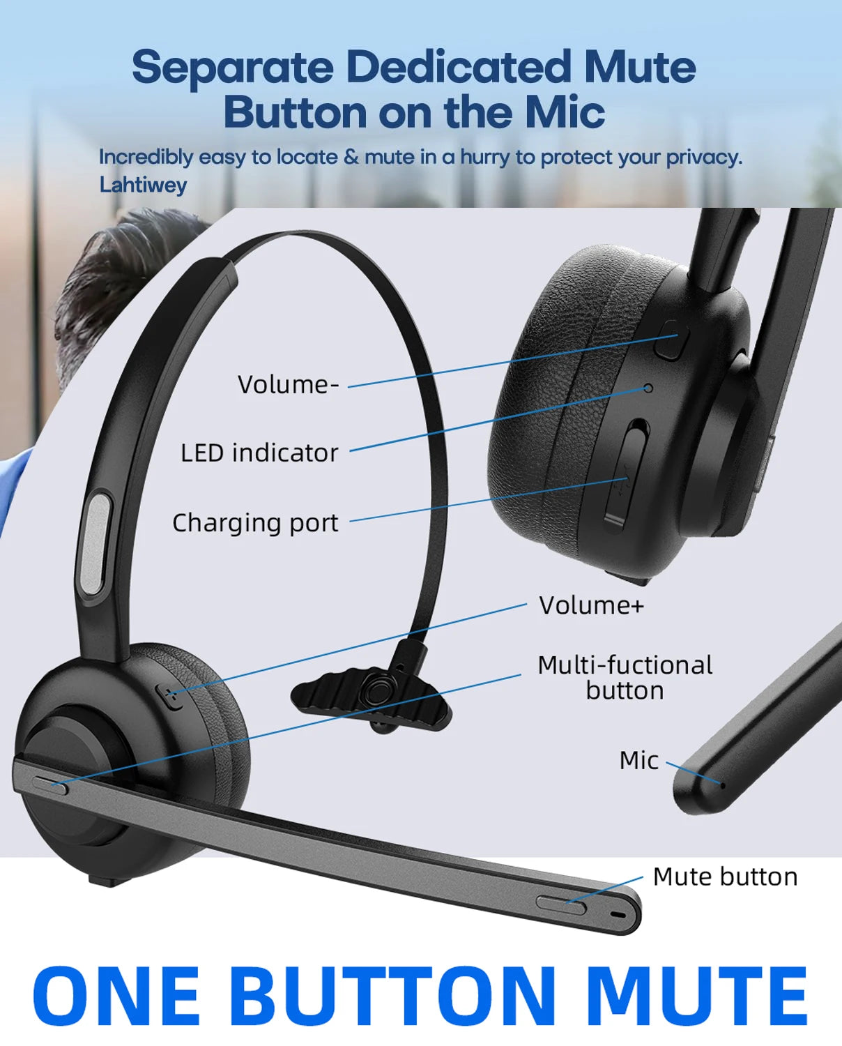 سماعة بلوتوث، سماعة رأس لاسلكية مزودة بميكروفون للعمل، سماعات رأس بلوتوث V5.3 لسائقي الشاحنات، سماعة رأس للكمبيوتر مزودة بميكروفون