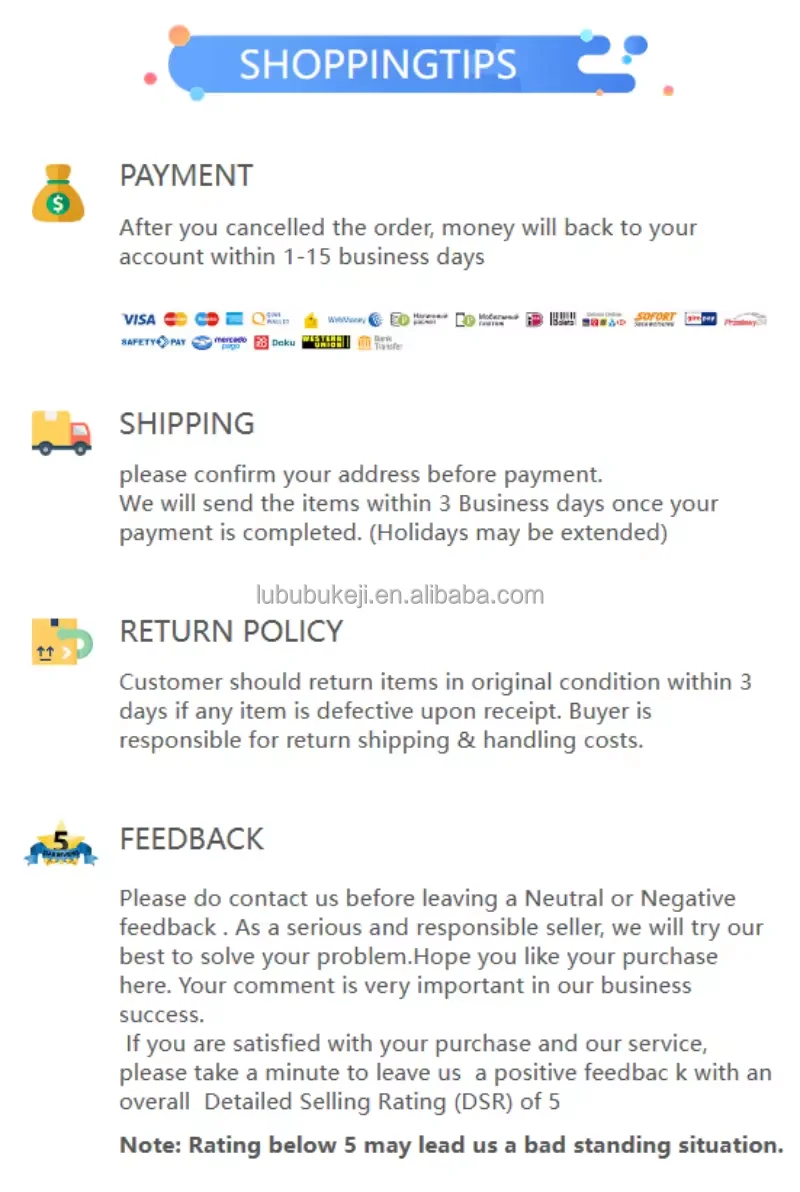 ج: نعم، لديّ مستودعات في كلٍّ من الولايات المتحدة وأوروبا. تُقدّم الطلبات في نفس اليوم، وتُشحن في نفس اليوم. تصل المنتجات بسرعة خلال يوم إلى سبعة أيام (حسب الموقع ووقت التسليم).