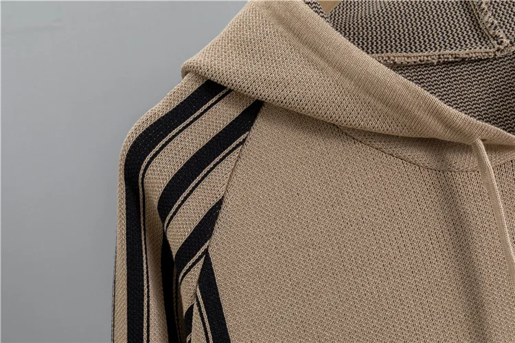 طقم نسائي خريفي أنيق مكون من قطعتين، سترة فضفاضة محبوكة بغطاء للرأس، بنطال هارلان رياضي، ملابس رياضية شتوية