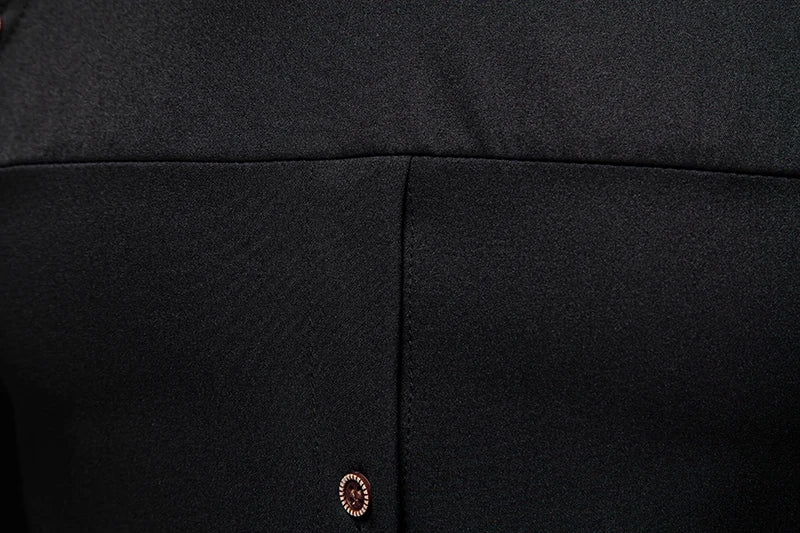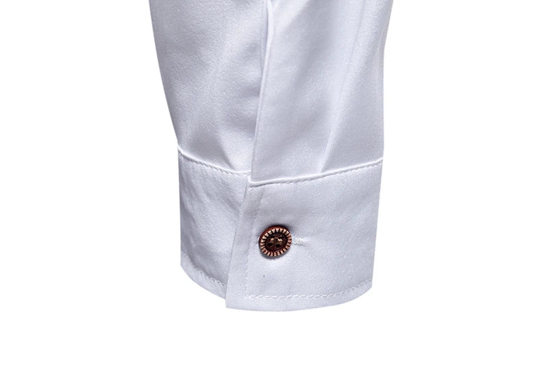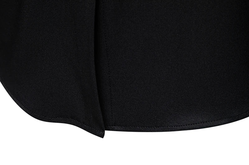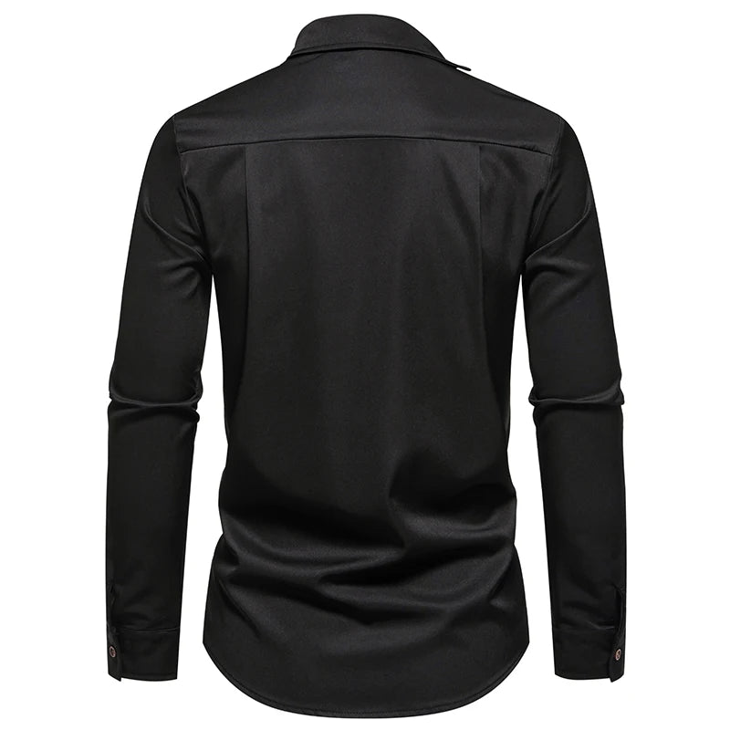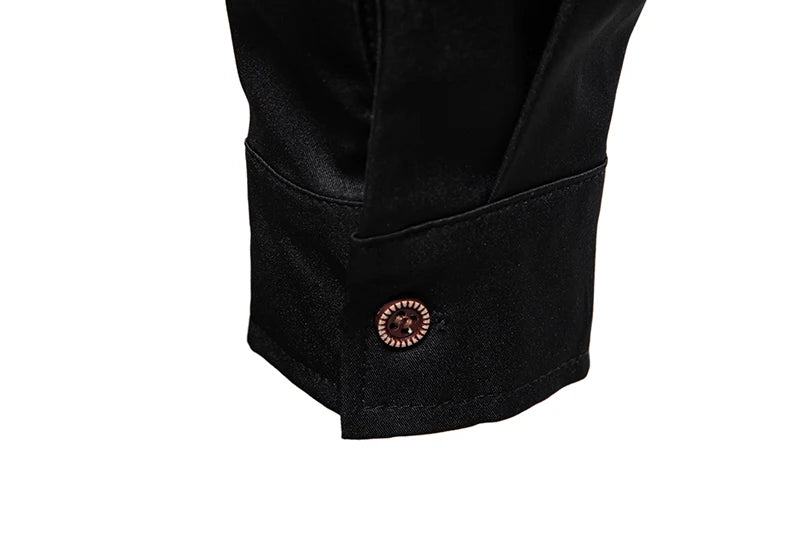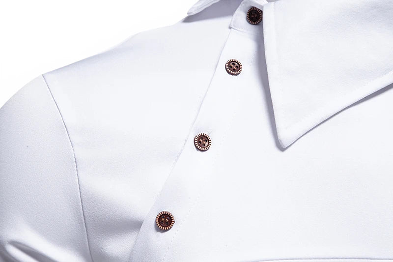 قميص رجالي عصري بياقة واقفة وأزرار مائلة وأكمام طويلة غير منتظمة مناسب للأعمال والمهرجانات