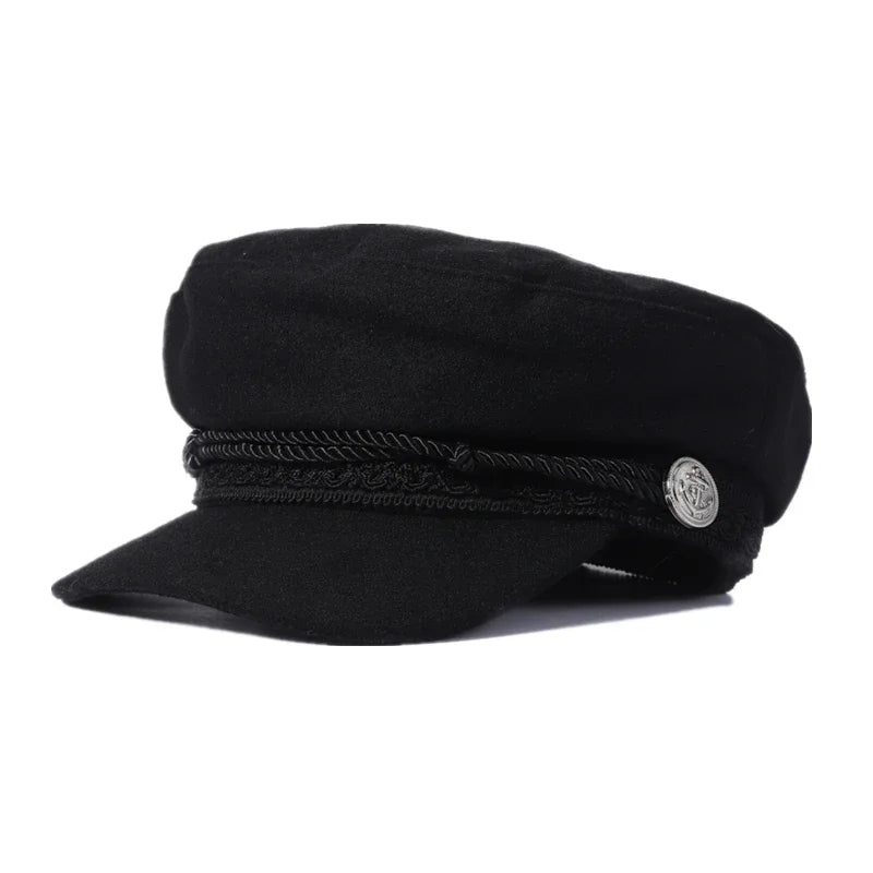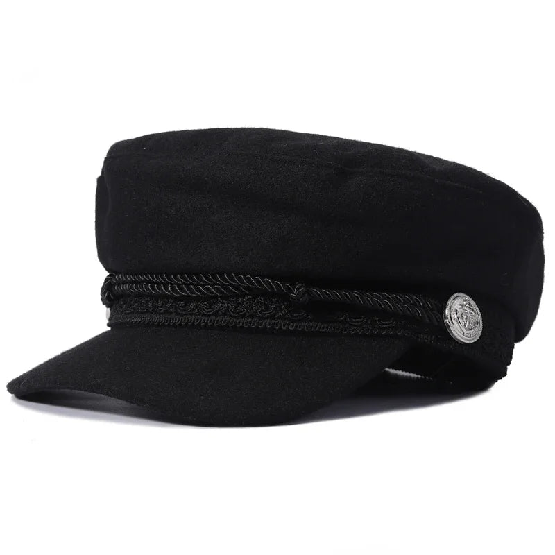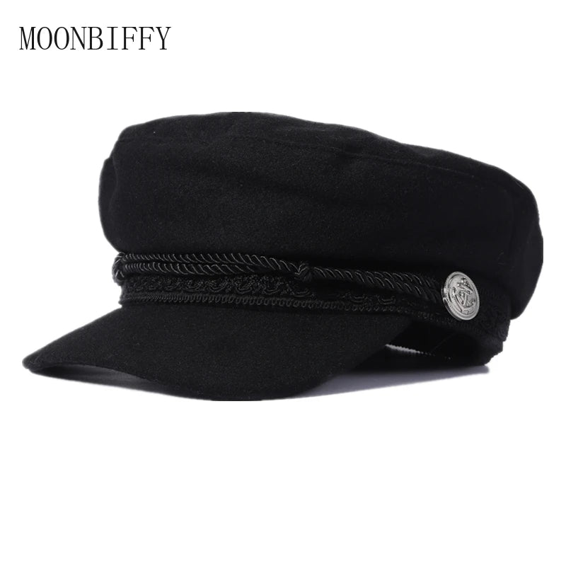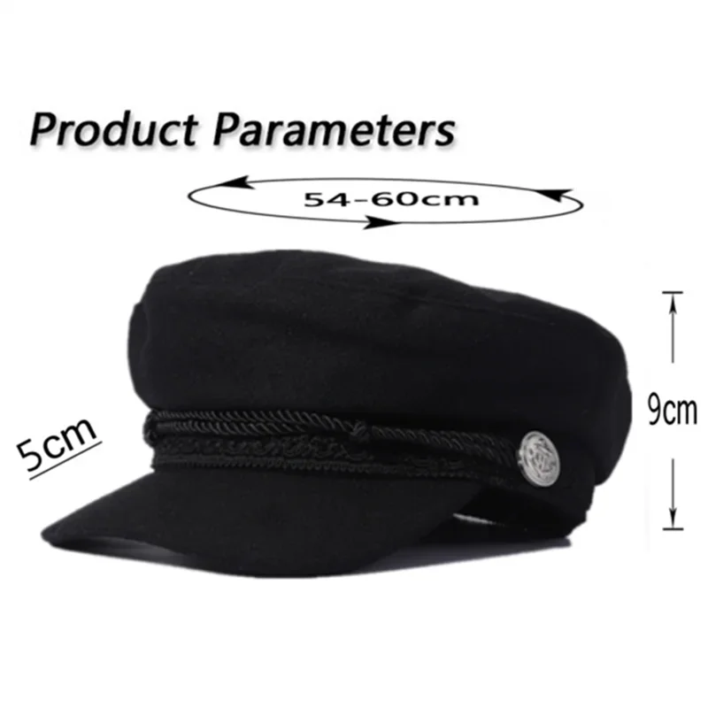 قبعة بحار سوداء أنيقة للنساء والرجال لفصل الربيع والخريف، قبعة كابتن للسفر، قبعة مثمنة الشكل