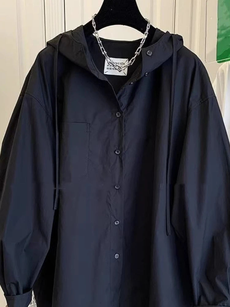 أزياء نسائية، بلوزات كبيرة الحجم، ملابس نسائية 2025، بلوزات نسائية أنيقة، قميص بقلنسوة بأكمام طويلة، معطف أبيض أساسي كاجوال