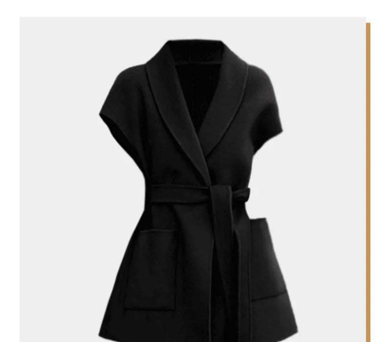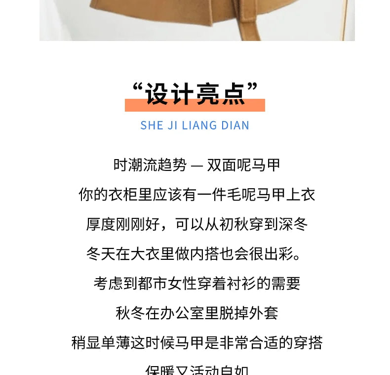 سترة صوف أنيقة للنساء لخريف وشتاء، صدرية متوسطة الطول من الصوف على الوجهين، سترة أنيقة للنساء مع مشبك على شكل حصان