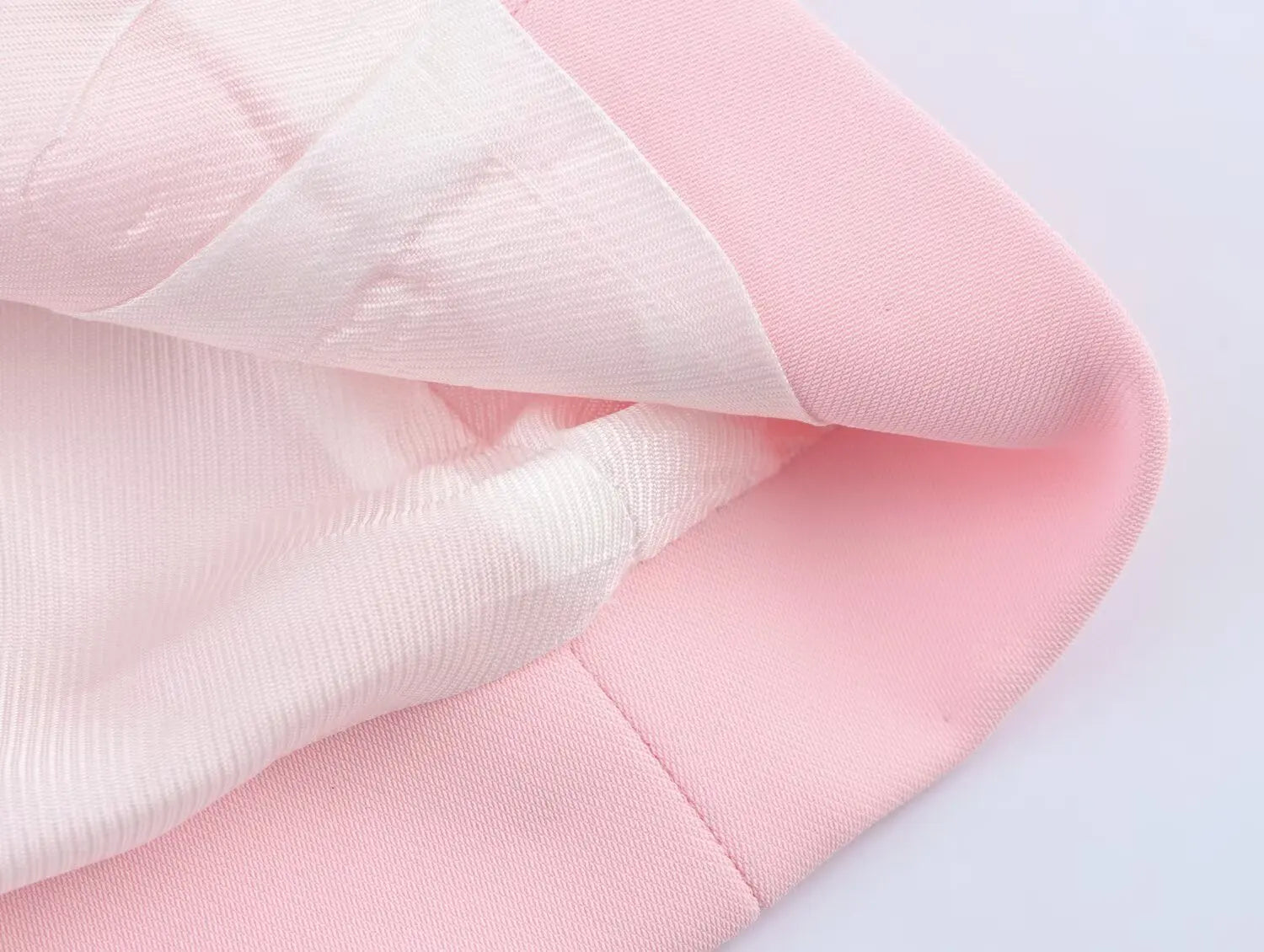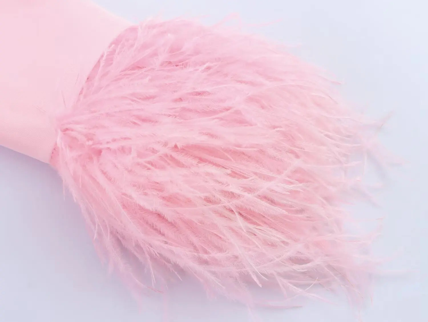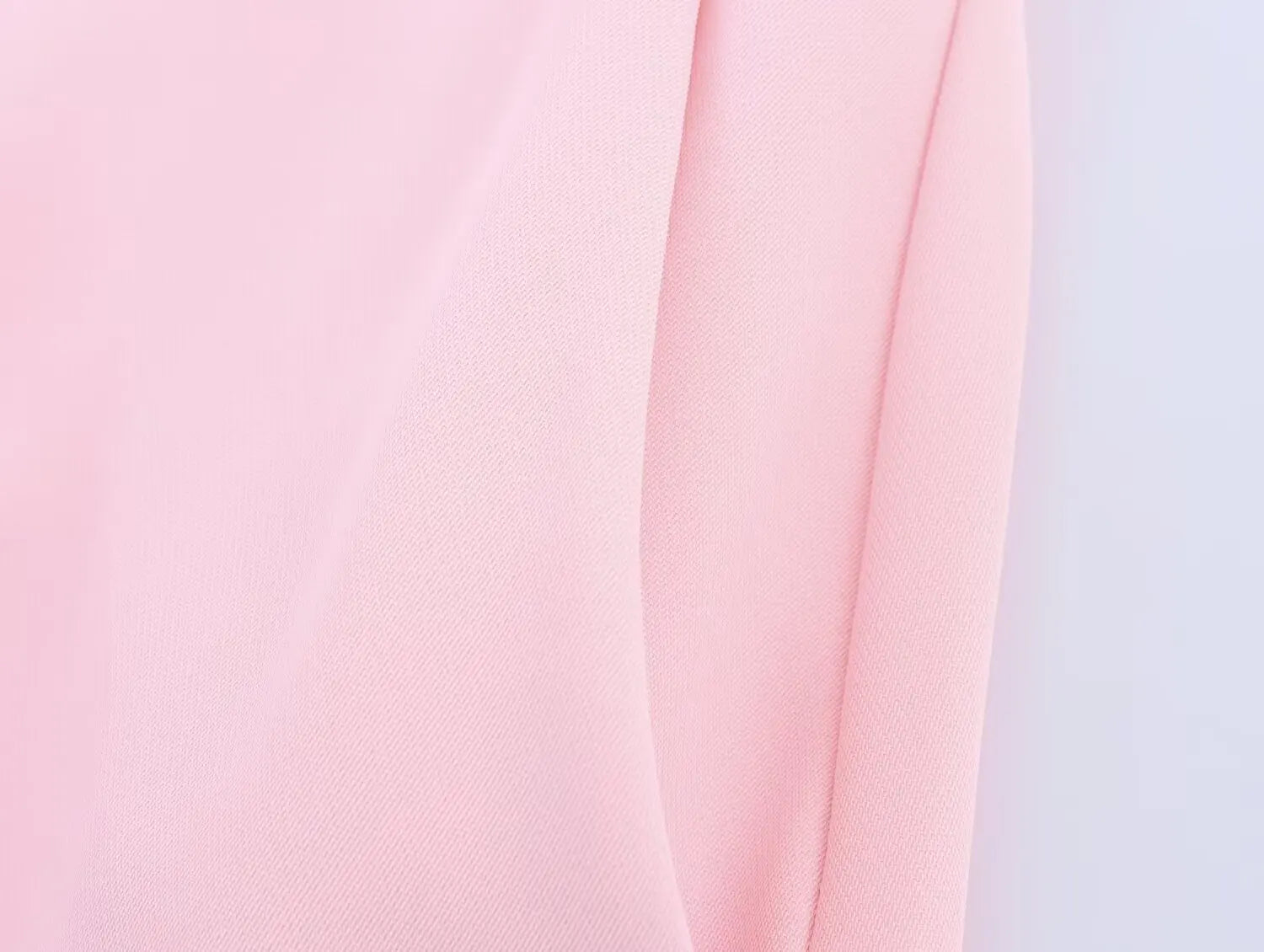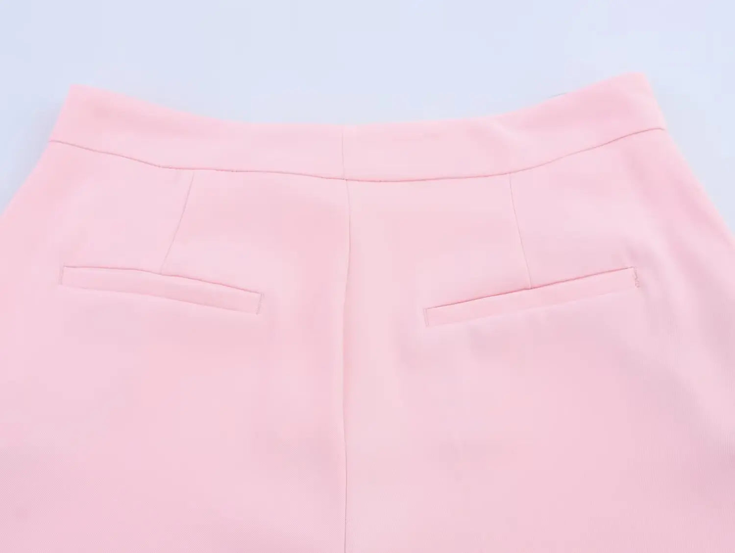طقم نسائي وردي من HH Fashion، يتكون من سترة ريشية بياقة مطوية وأكمام طويلة وصدر واحد + بنطال طويل بسحاب وجيوب وخصر مرتفع