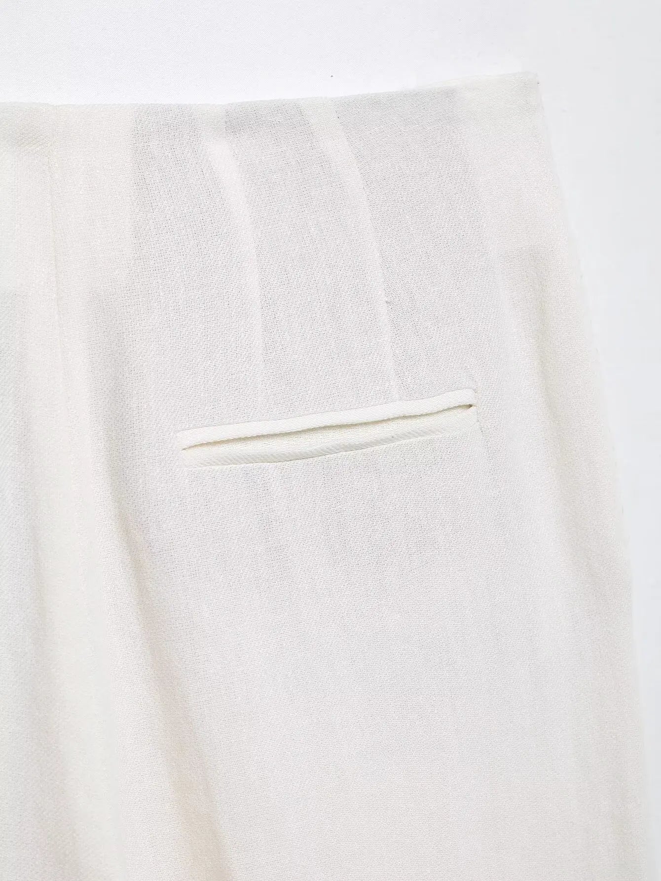 طقم نسائي ربيعي أنيق من HH، يتكون من سترة بيضاء بياقة مطوية وأكمام طويلة وأربطة + بنطلون طويل بسحاب وخصر مرتفع.