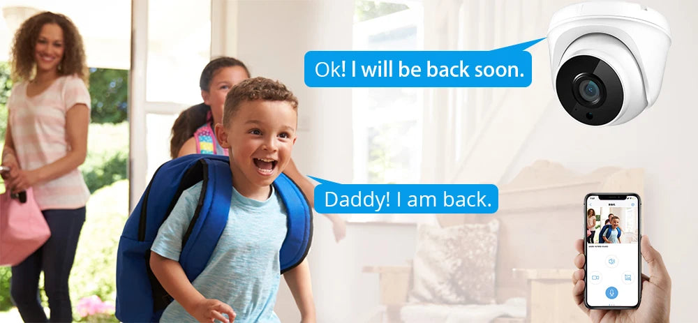 بفضل الميكروفون ومكبر الصوت المدمجين، يمكنك رؤية حبيبك والتحدث معه والاستماع إليه أو تخويف الشخص غير المتوقع على تطبيق CamHi في الوقت الفعلي حتى لو لم تكن في المنزل، مما يمنحك راحة البال والحماية على مدار 24 ساعة.