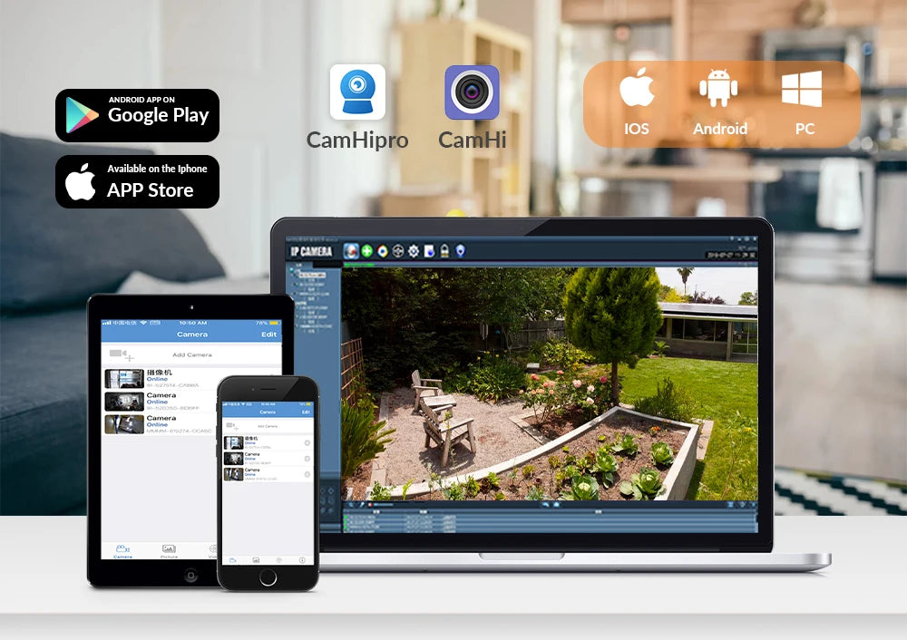 يدعم الهواتف المحمولة والأجهزة اللوحية وأجهزة iPad والكمبيوتر التي تعمل بنظامي التشغيل iOS وAndroid، ويمكن إدارة كاميرات متعددة في تطبيق واحد.