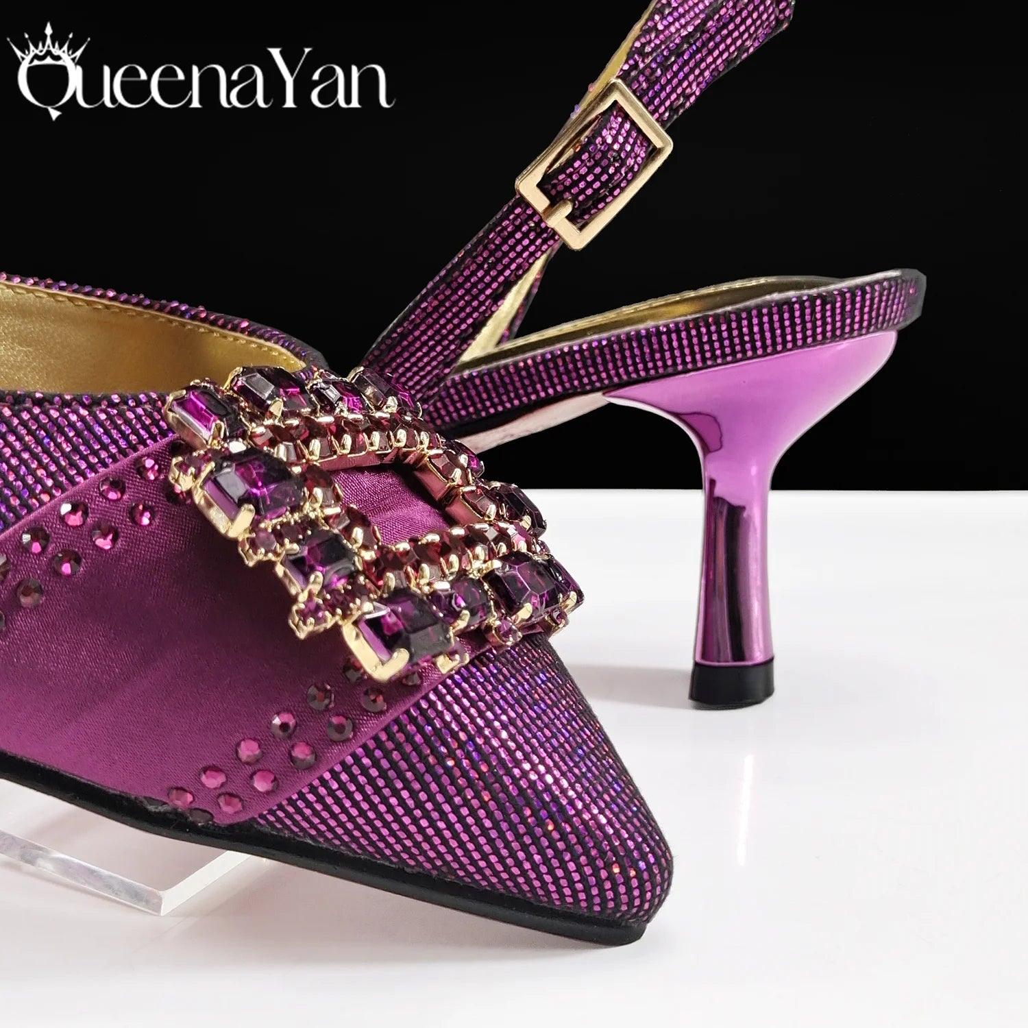 حذاء سهرة بتصميم إيطالي أنيق مع مقدمة مدببة وحقيبة كلاتش متناسقة، حذاء نسائي أنيق للمناسبات الخاصة