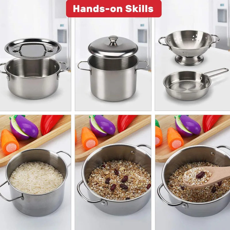 ألعاب أواني الطبخ والمقالي للأطفال - مجموعة ألعاب المطبخ - أدوات طهي صغيرة من الفولاذ المقاوم للصدأ - ألعاب تطويرية