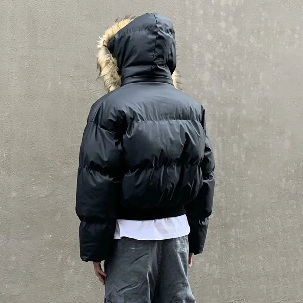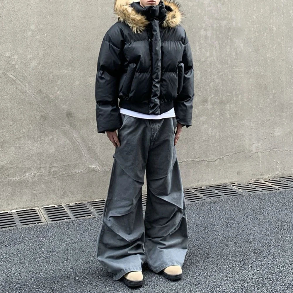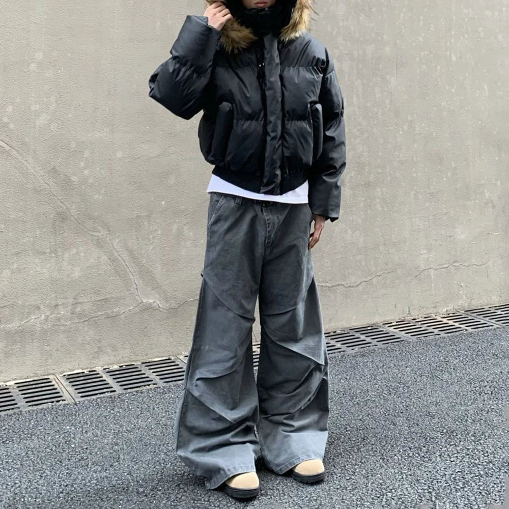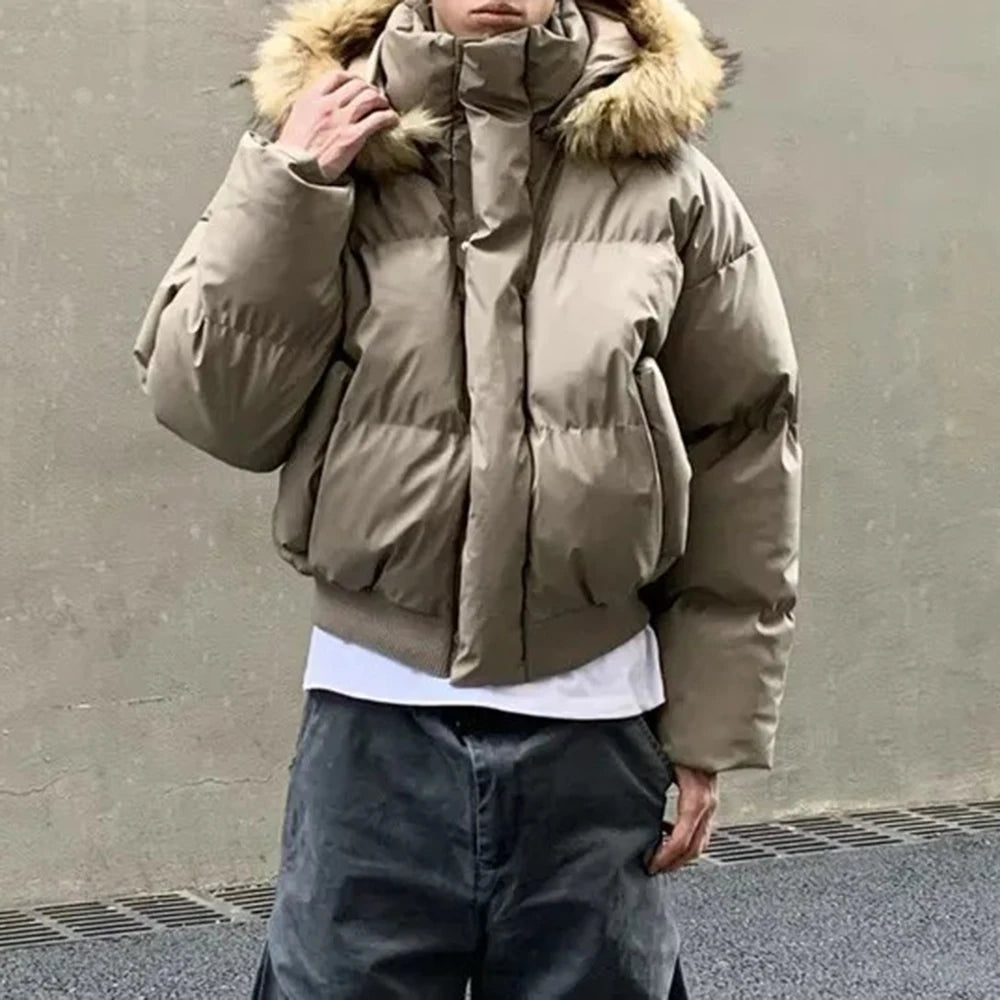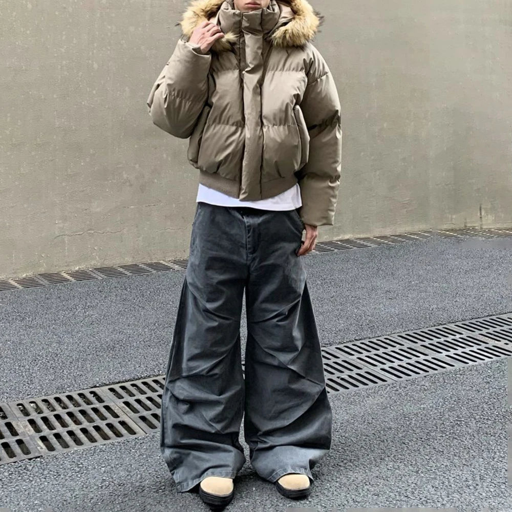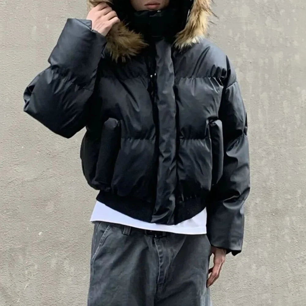 معطف رجالي من القطن بياقة من الفرو وغطاء للرأس لفصل الخريف والشتاء، معطف سميك أمريكي متقدم، جاكيت قصير للرجال من Y2K