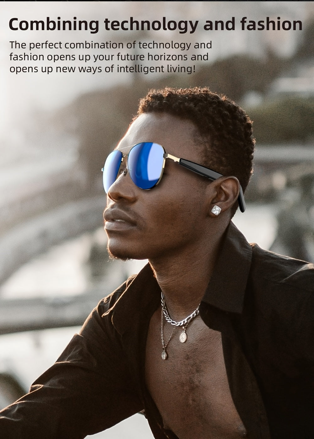 نظارات صوتية ذكية جديدة وعصرية مزودة بميكروفون ومكبر صوت مدمجين، مكالمات صوتية عالية الدقة، جودة صوت عالية الدقة، مناسبة للقيادة والعمل في الهواء الطلق والارتداء المنزلي اليومي، متوافقة مع هواتف IOS/Android، مناسبة لـ