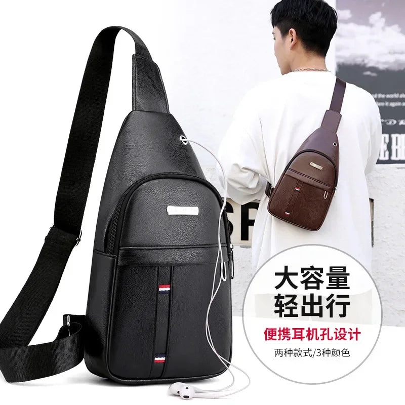 حقيبة كتف متعددة الوظائف للرجال في الهواء الطلق، حقائب كروس بودي بتصميم شحن USB، حقيبة صدر مقاومة للماء، حقيبة يد صدر