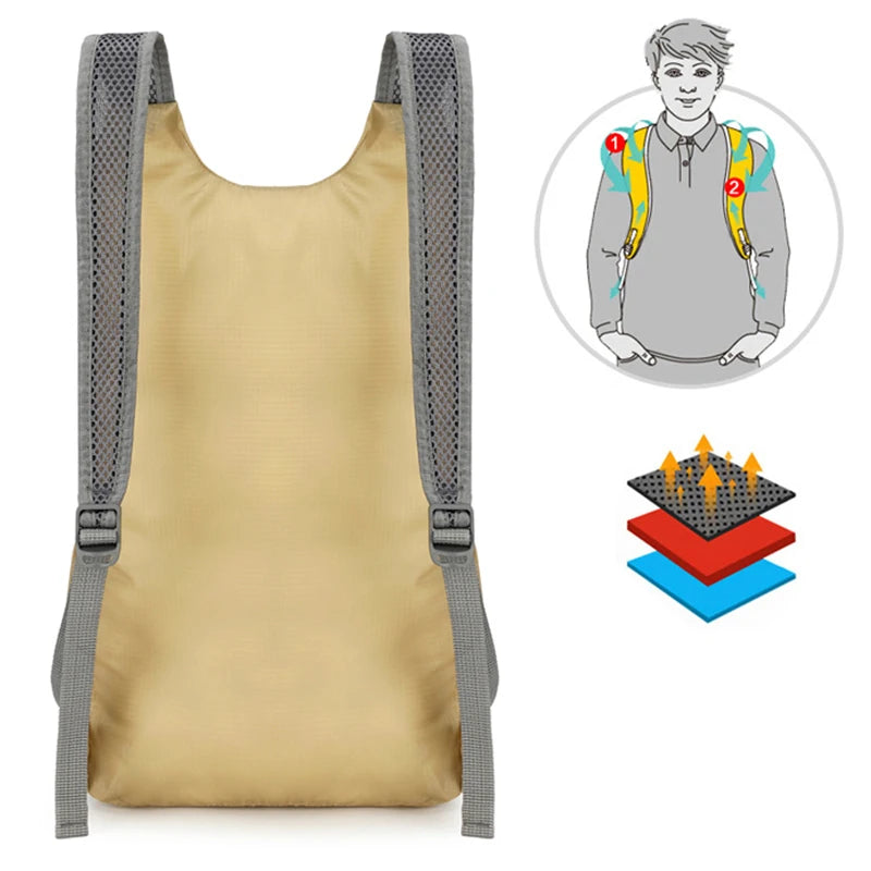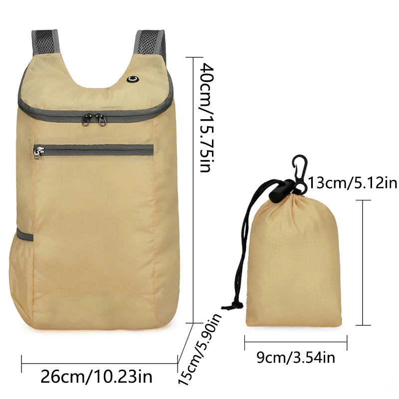 حقيبة ظهر رياضية ترفيهية خارجية، حقيبة قابلة للطي، تخزين خفيف، مقاومة للتآكل، حقيبة ظهر للمشي لمسافات طويلة وركوب الدراجات