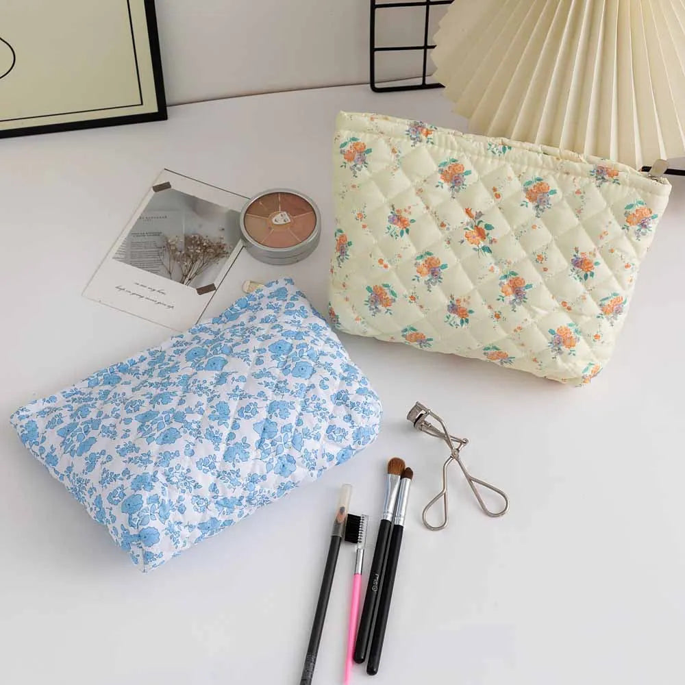 حقيبة مكياج مطرزة بالزهور باسم شخصي، هدية عيد ميلاد نسائية، حقيبة مستحضرات تجميل قطنية للبنات، حقيبة تخزين هدايا الزفاف