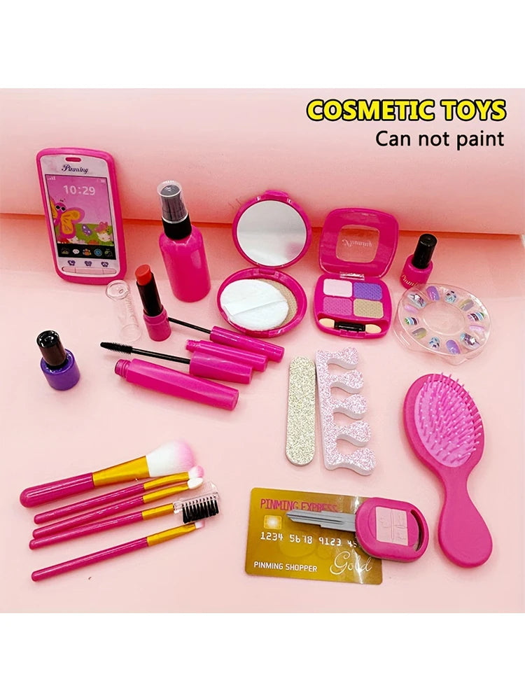 مجموعة مكياج تظاهرية للبنات مع حقيبة مستحضرات تجميل، لعبة بيت مكياج، مجموعة سفر للهاتف المحمول، مجموعة تجميل الأظافر، أحمر الشفاه، لعبة ممتعة