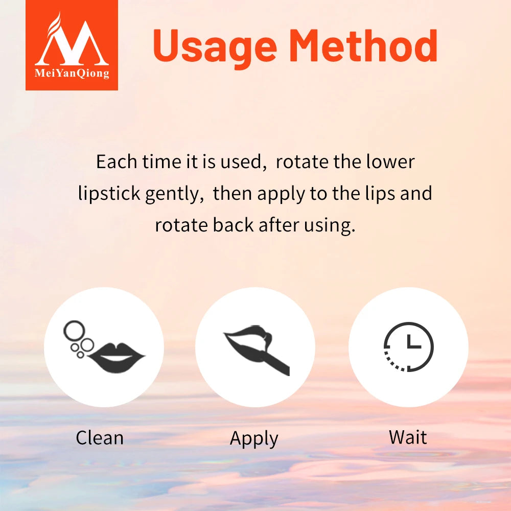 في كل مرة تستخدمينها، قومي بتدوير أحمر الشفاه السفلي بلطف، ثم ضعيه على الشفاه، وبعد الاستخدام، يمكن تدوير أحمر الشفاه للخلف.