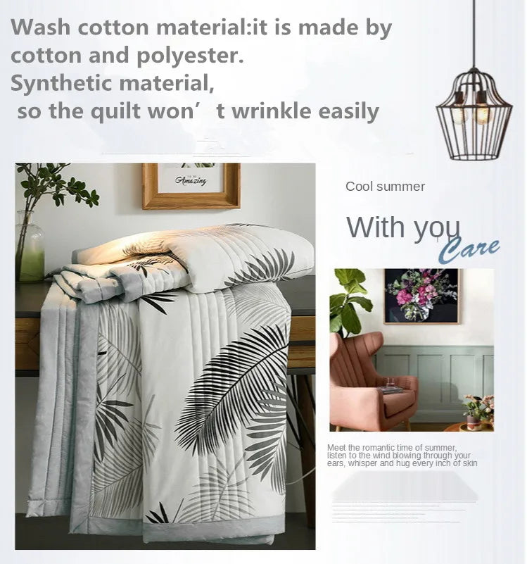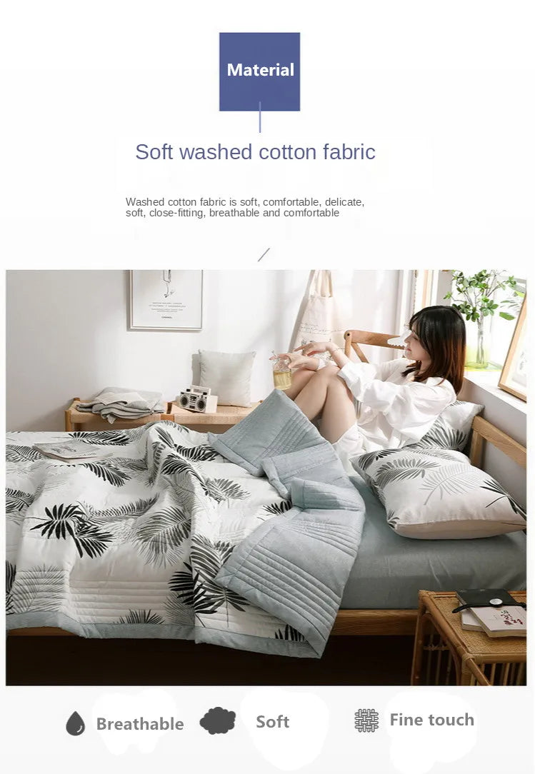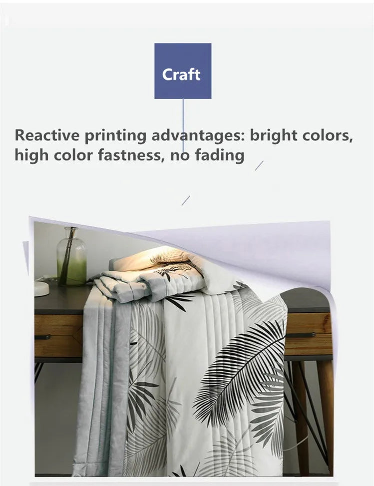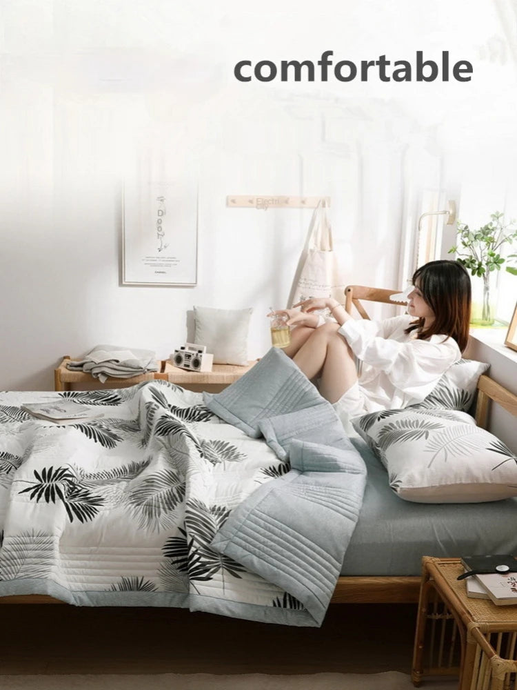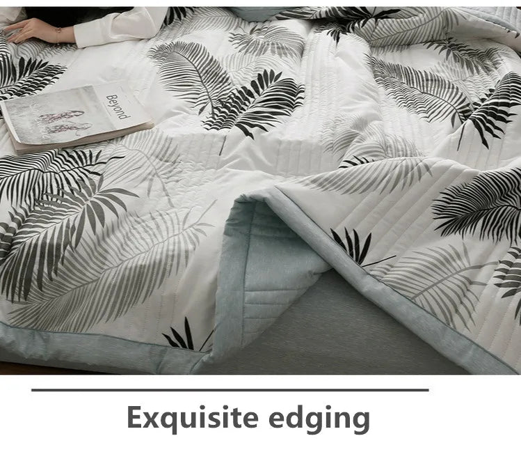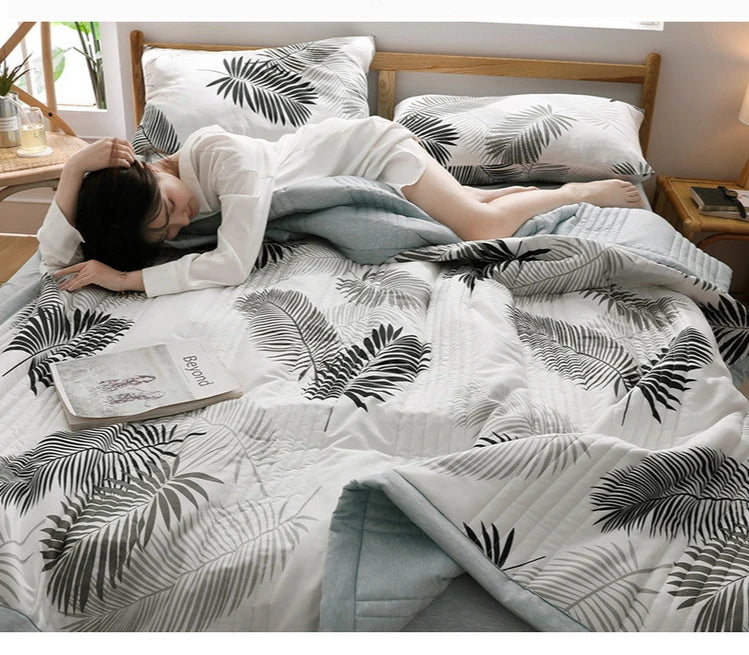 لحاف صيفي من القطن المغسول، لحاف مكيف للهواء، بطانية ناعمة وجيدة التهوية، مفرش سرير مطبوع عليه أوراق رقيقة، غطاء سرير، منسوجات منزلية