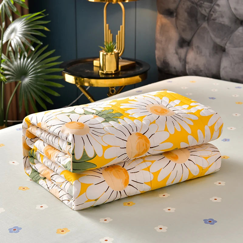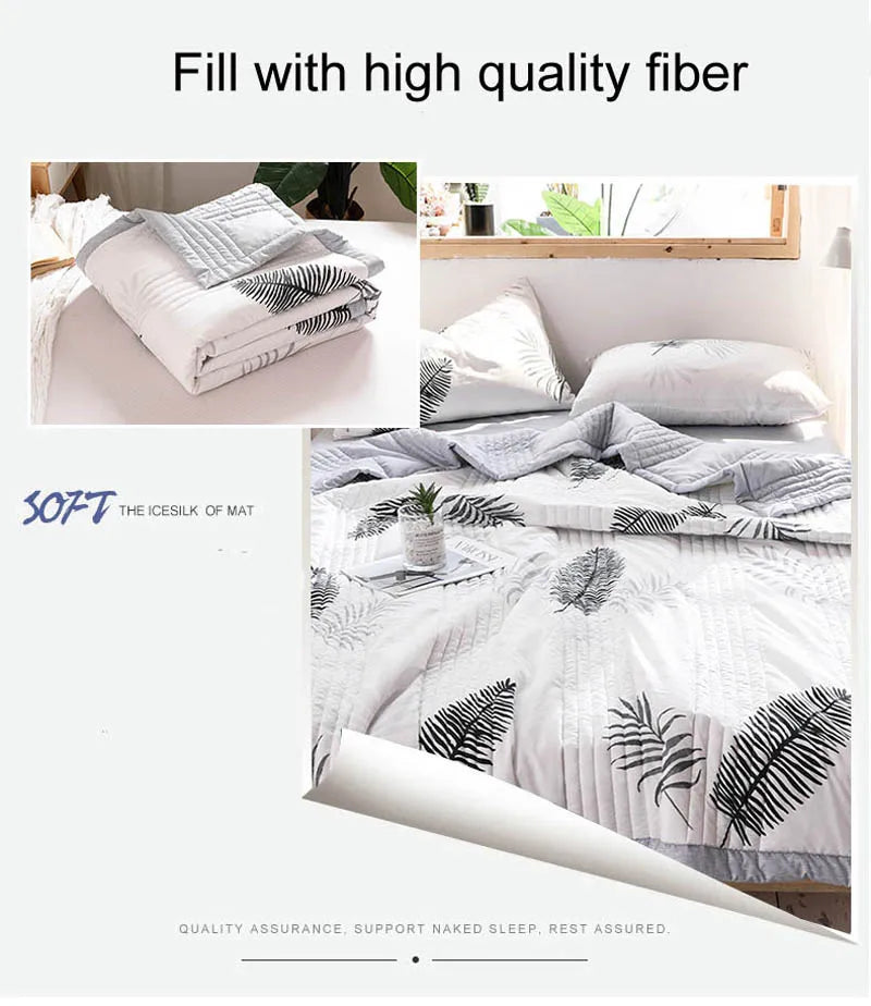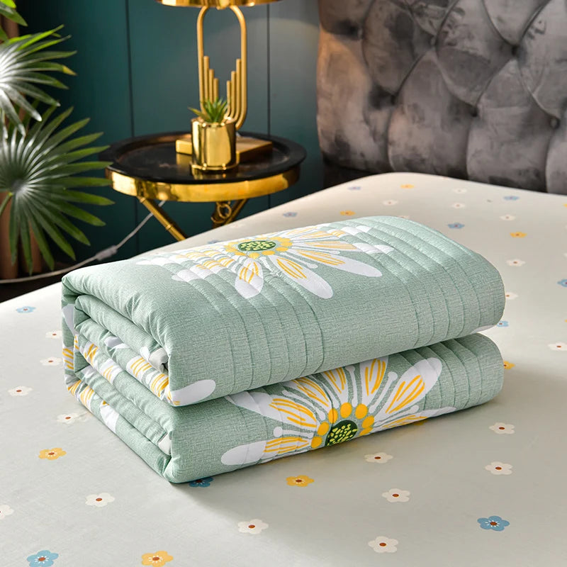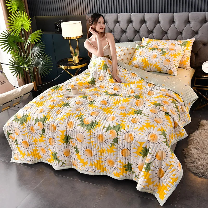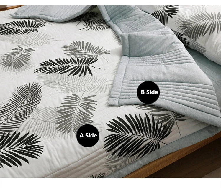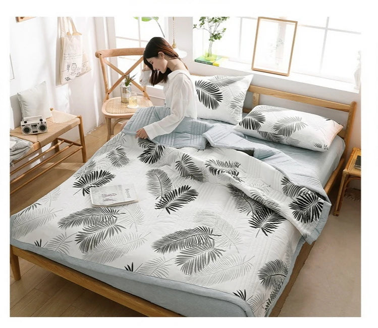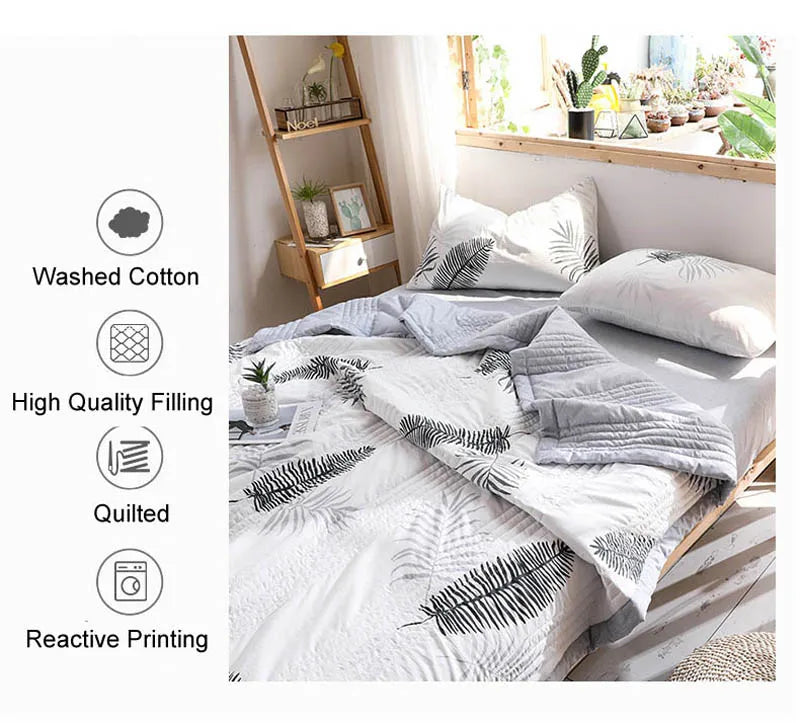 لحاف صيفي من القطن المغسول، لحاف مكيف للهواء، بطانية ناعمة وجيدة التهوية، مفرش سرير مطبوع عليه أوراق رقيقة، غطاء سرير، منسوجات منزلية