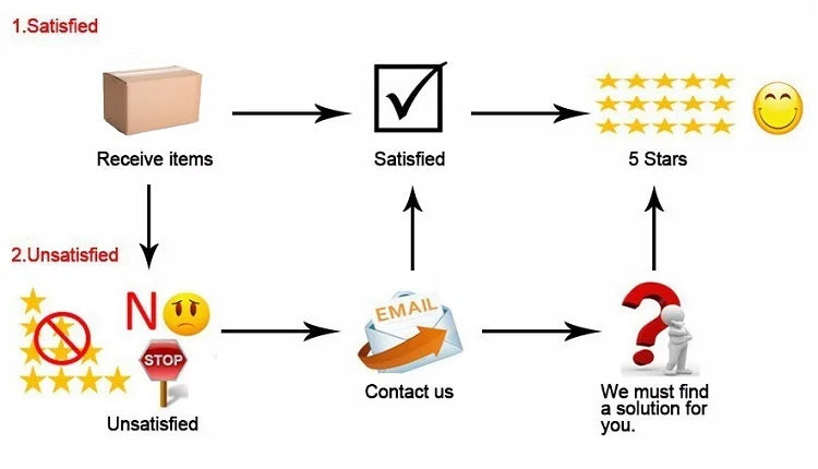 نحن نحافظ على معايير عالية من التميز ونسعى جاهدين لتحقيق رضا العملاء بنسبة 100٪! التعليقات مهمة جدًا نطلب منك الاتصال بنا على الفور قبل أن تقدم لنا تعليقات محايدة أو سلبية، حتى نتمكن من معالجة مخاوفك بشكل مرضٍ.
