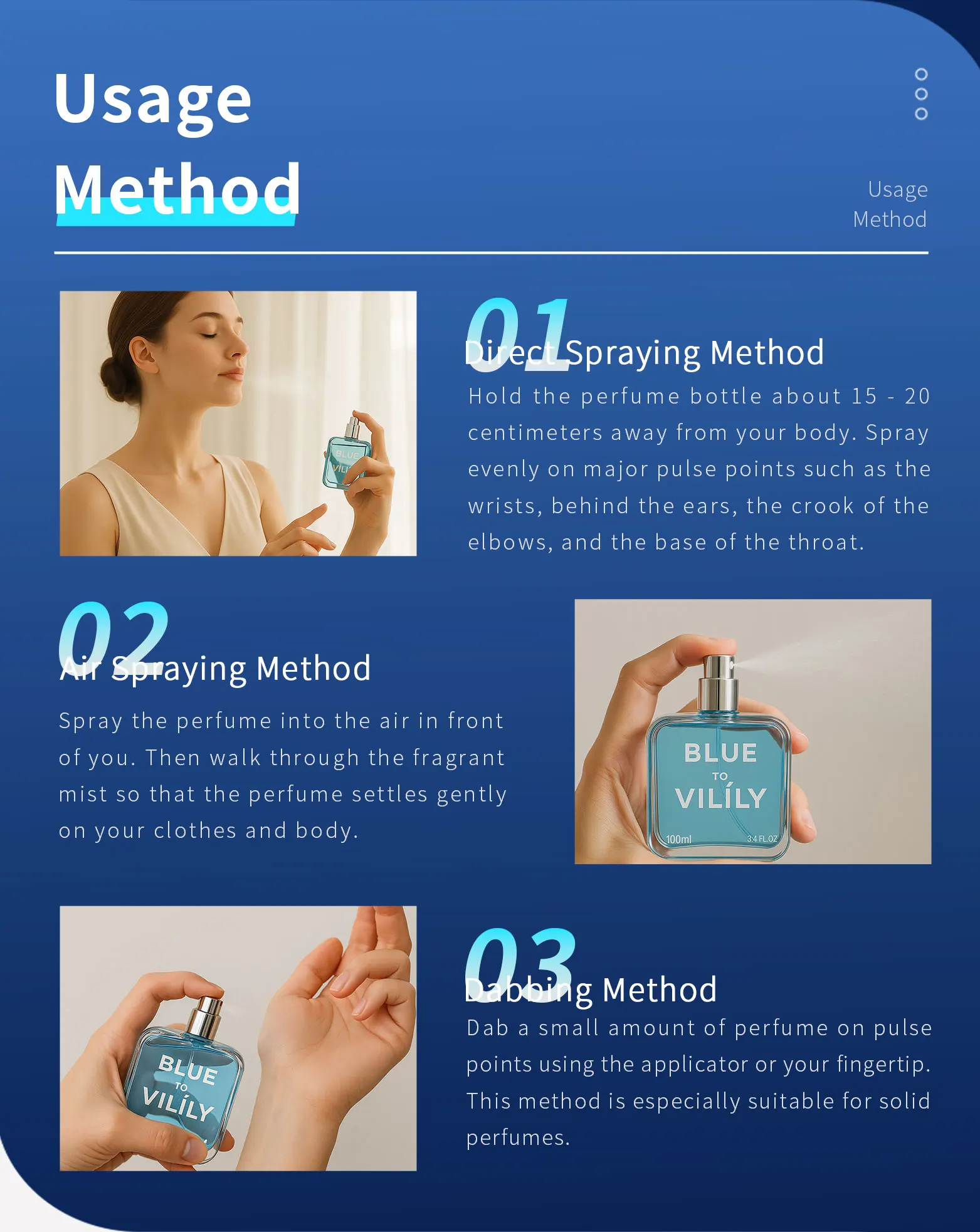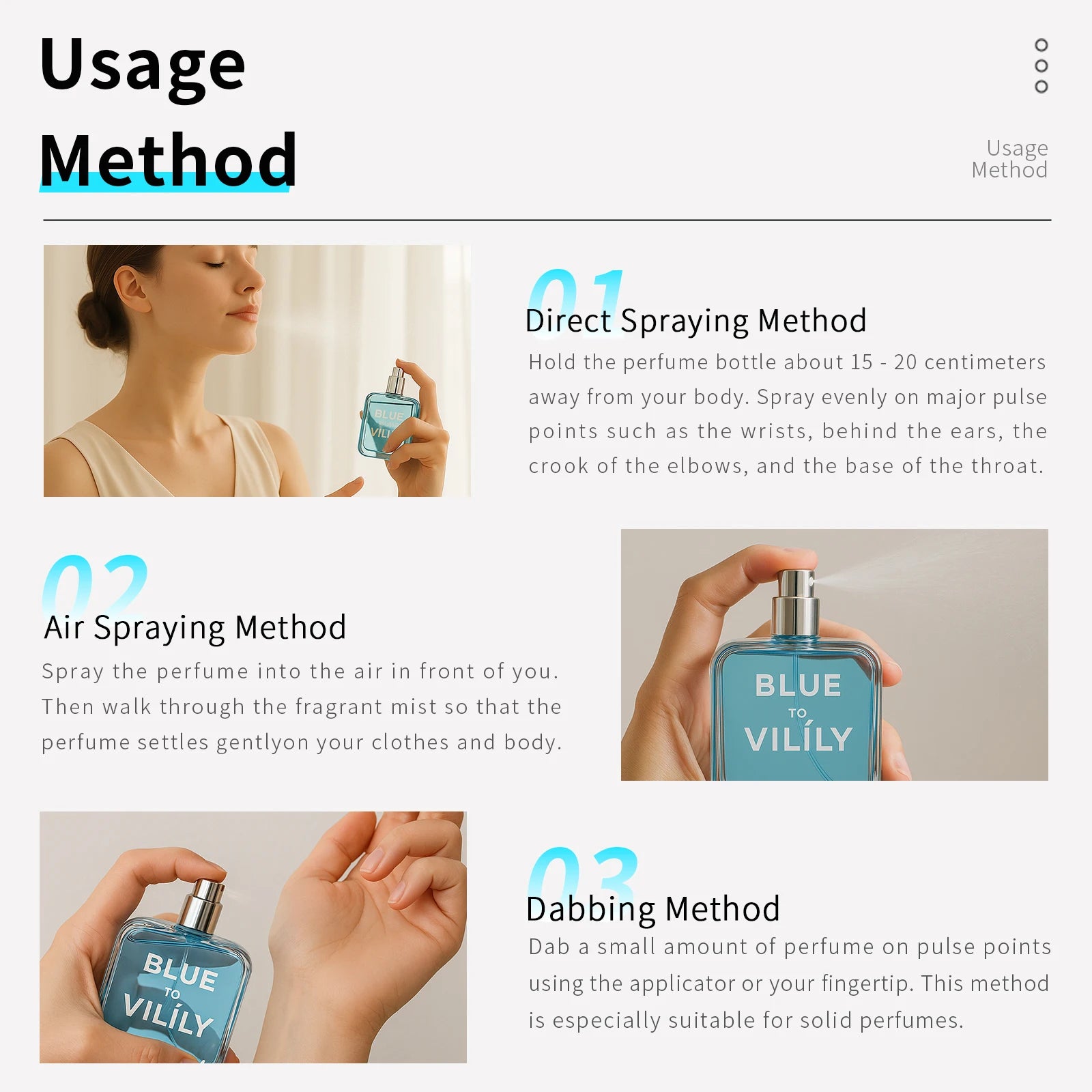 الاستخدام : الاستخدام اليومي، التاريخ، العطر الساحر، المكتب، الحفلات، غير الرسمي
