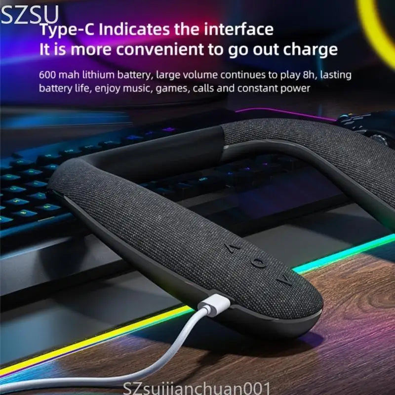 مكبر صوت 5.3 قابل للارتداء ومتوافق مع تقنية البلوتوث مع صوت محيطي ثلاثي الأبعاد وبطارية طويلة للاستخدام في المنزل والمكتب والاستخدام الخارجي