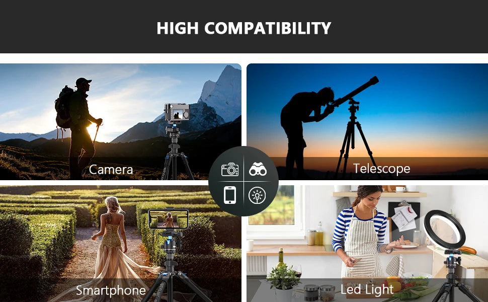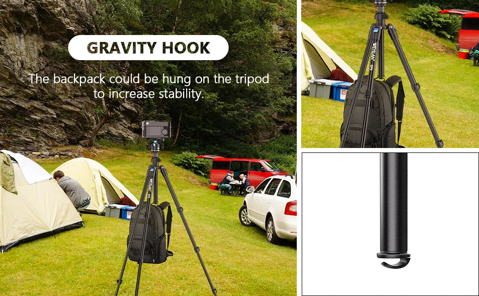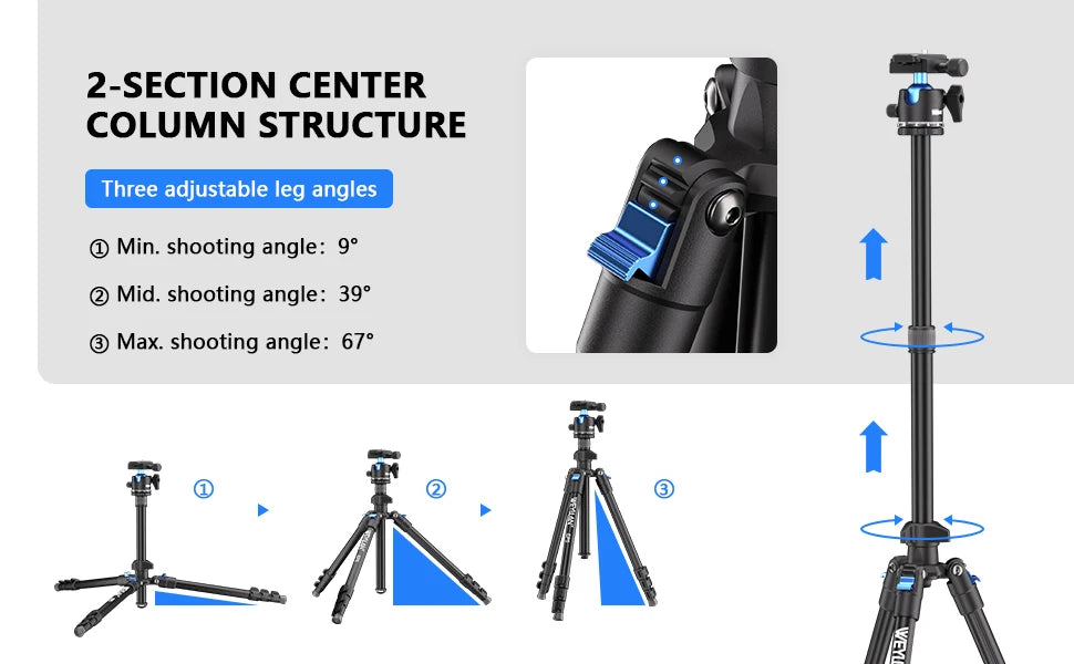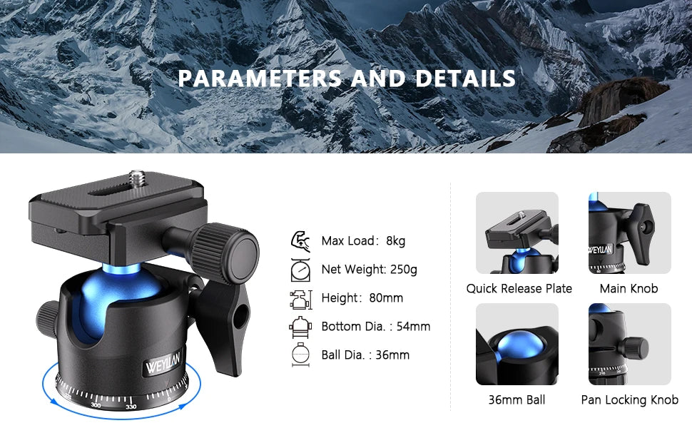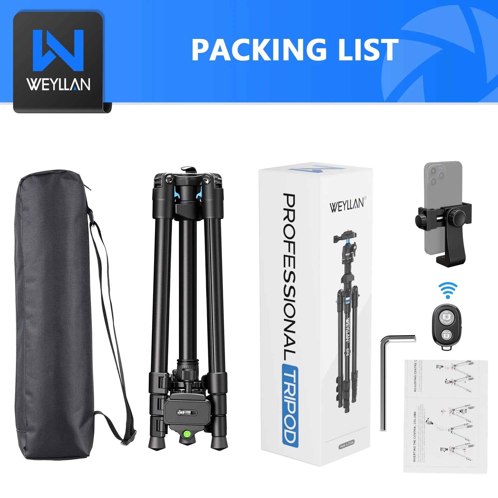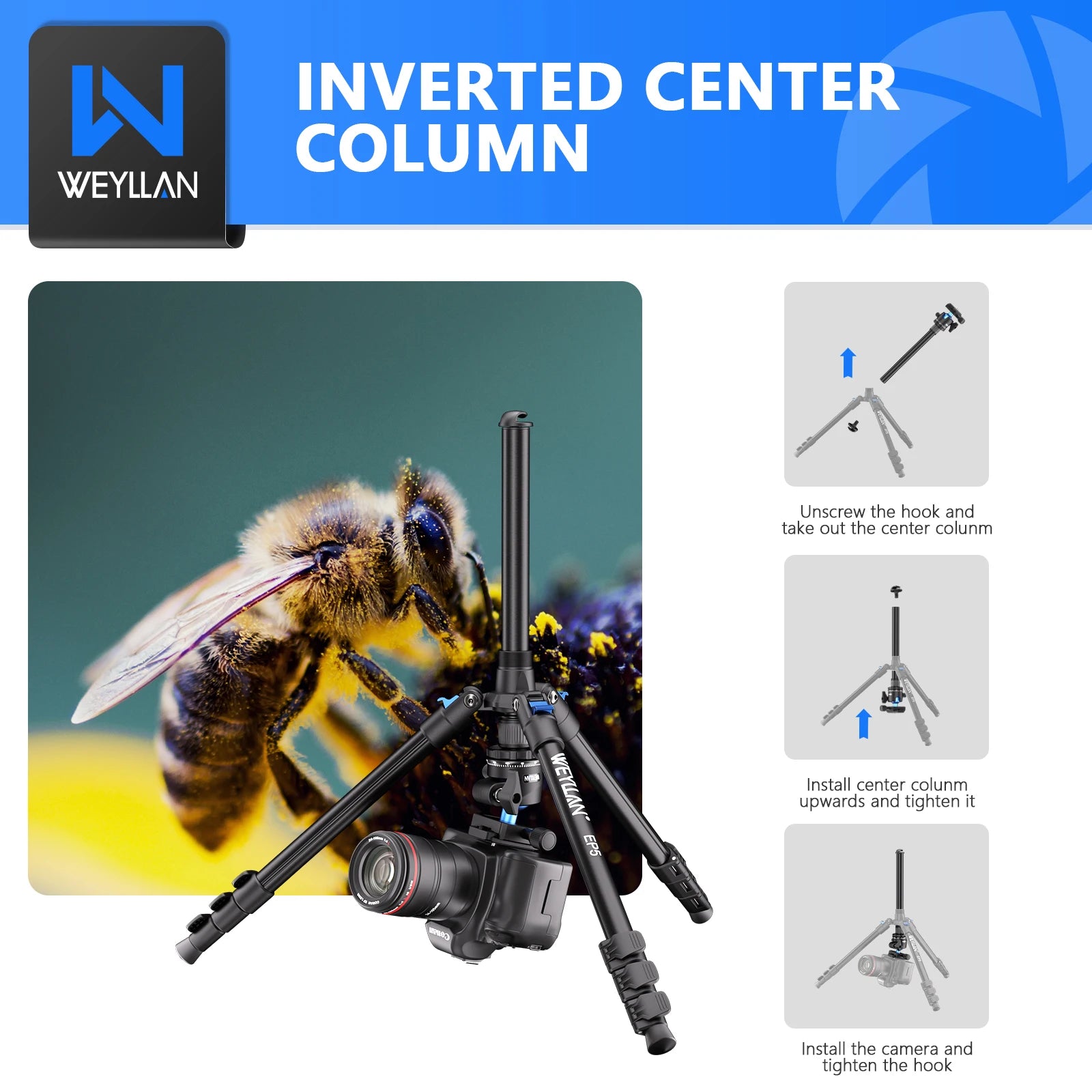 حامل ثلاثي خفيف الوزن Weyllan EP5 مصنوع من سبائك الألومنيوم وحامل ثلاثي محمول برأس كروي وحامل إضاءة للتصوير الفوتوغرافي للكاميرا