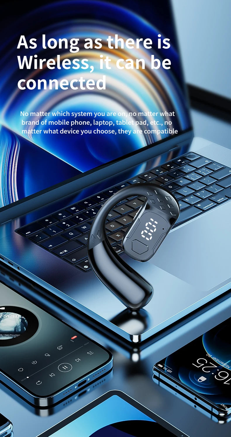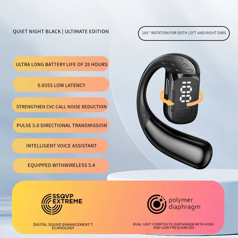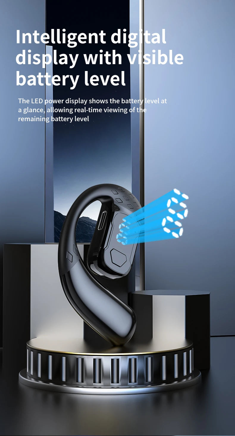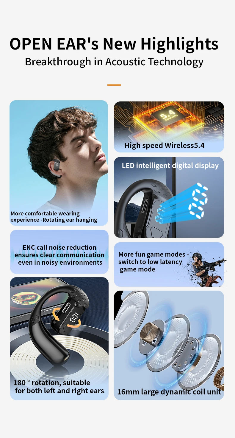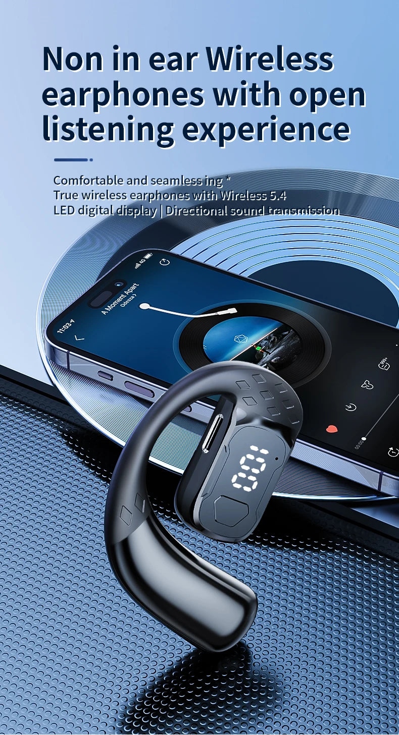 سماعة رأس لاسلكية بتقنية البلوتوث 5.4 مفتوحة بزاوية 180 درجة مع شاشة عرض LED للبطارية على كلا الأذنين وميكروفون وسماعة أذن