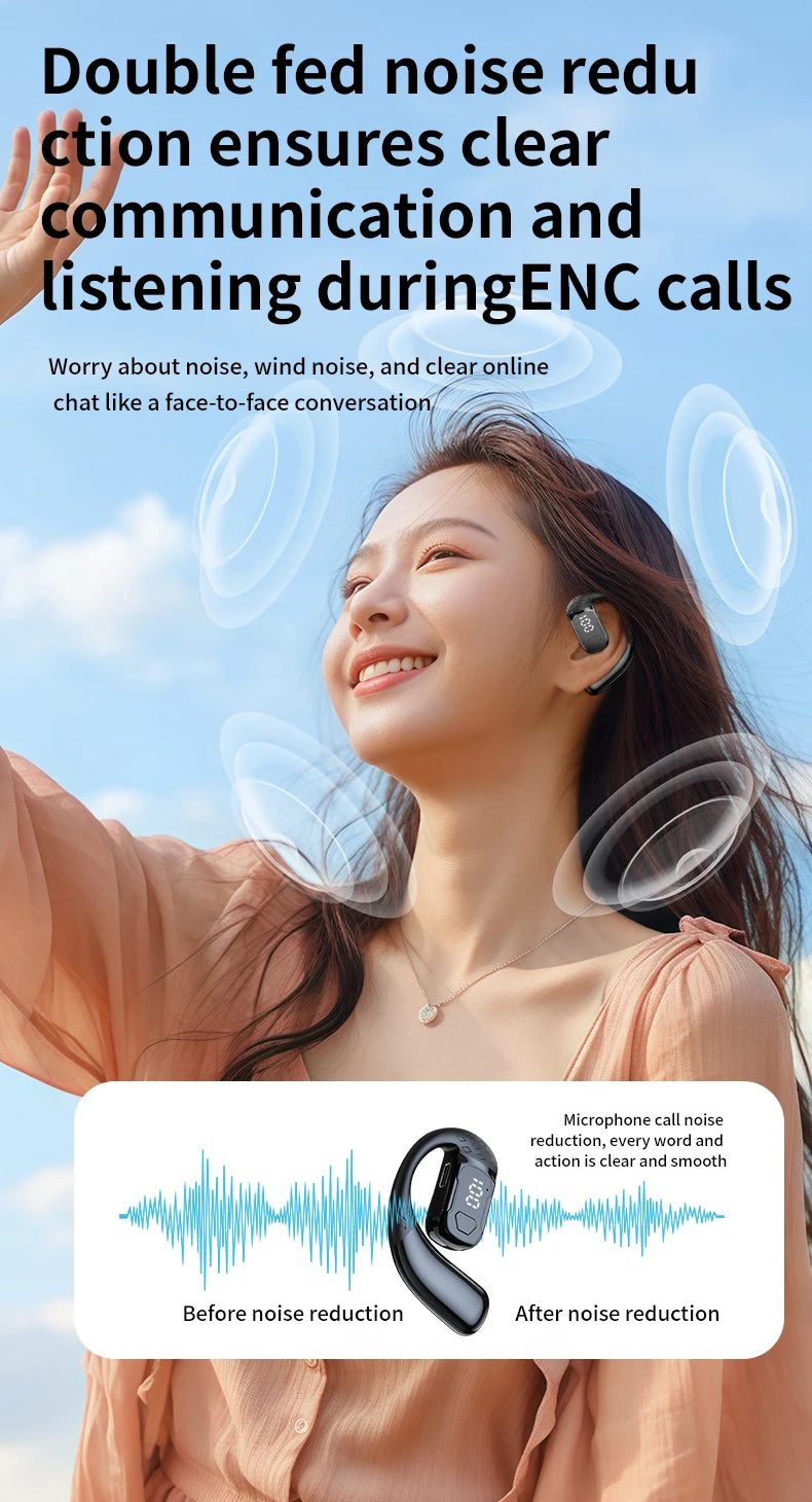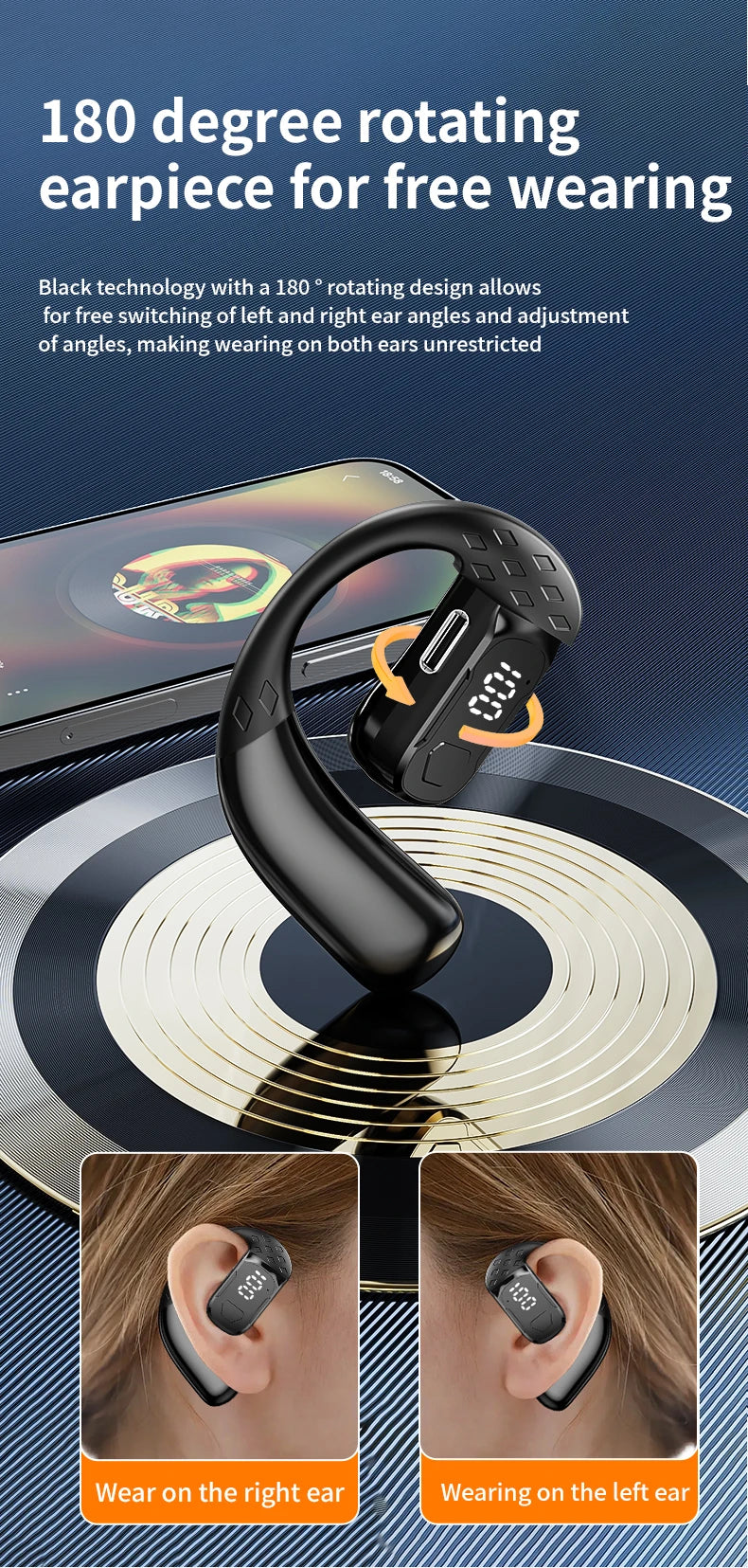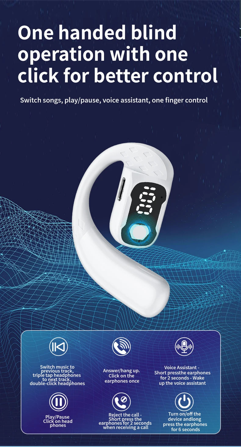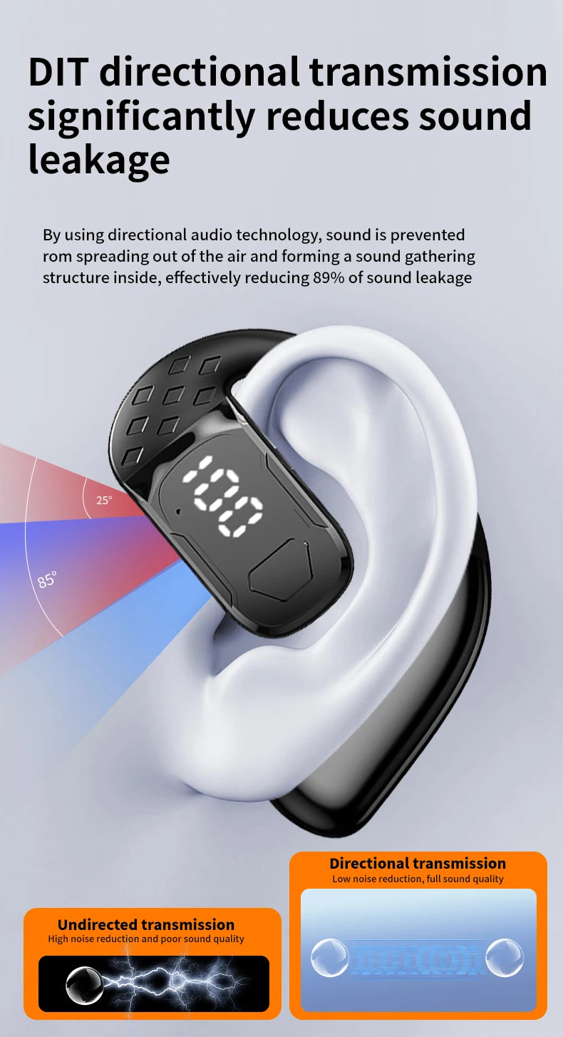 سماعة رأس لاسلكية بتقنية البلوتوث 5.4 مفتوحة بزاوية 180 درجة مع شاشة عرض LED للبطارية على كلا الأذنين وميكروفون وسماعة أذن