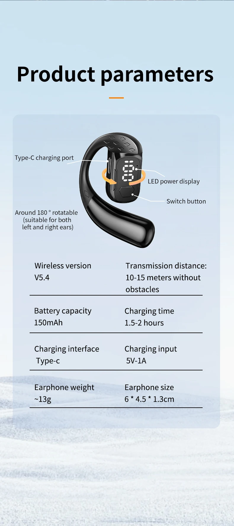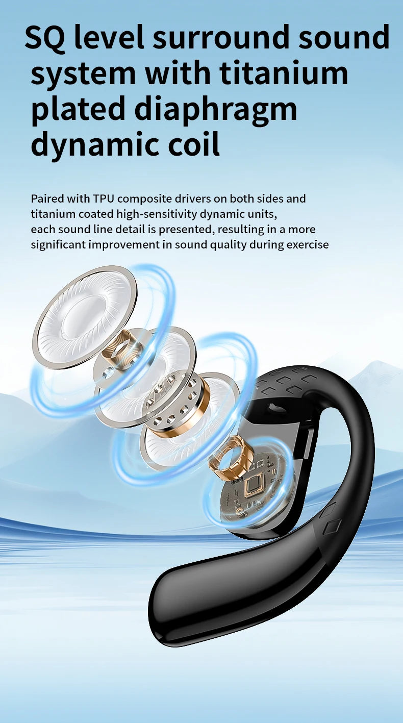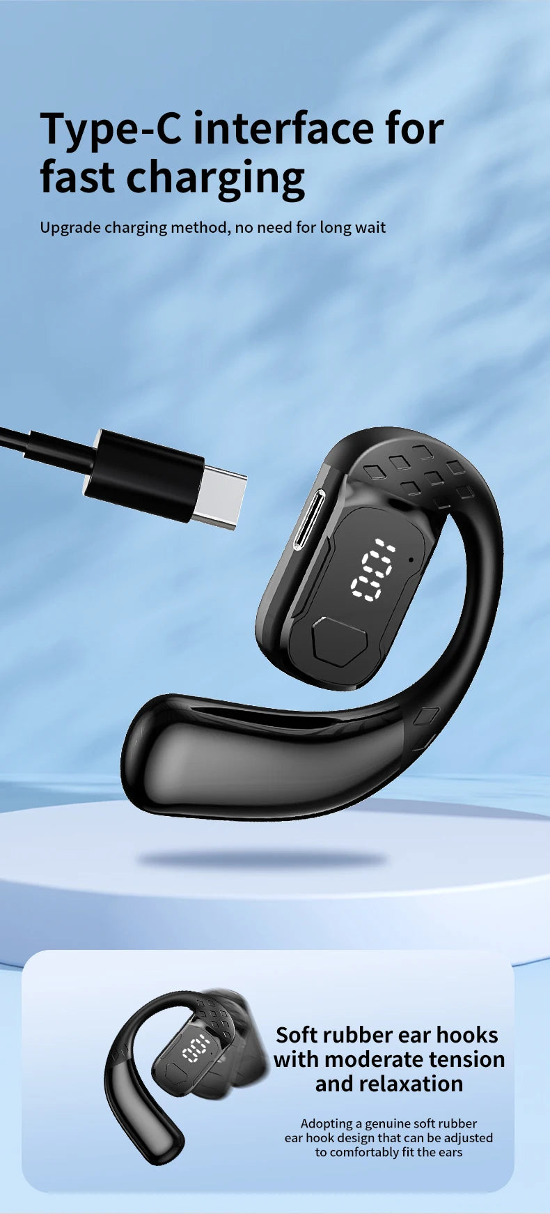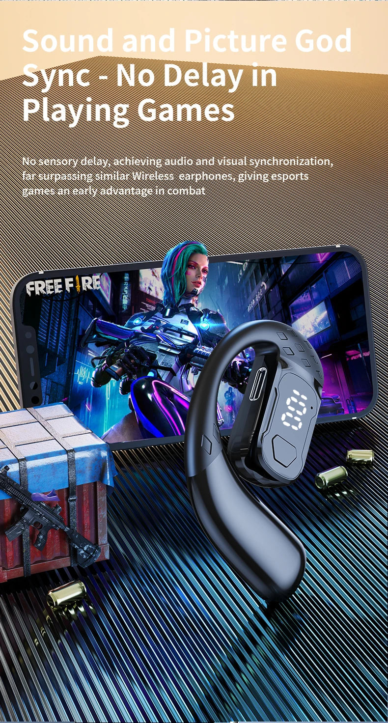 سماعة رأس لاسلكية بتقنية البلوتوث 5.4 مفتوحة بزاوية 180 درجة مع شاشة عرض LED للبطارية على كلا الأذنين وميكروفون وسماعة أذن