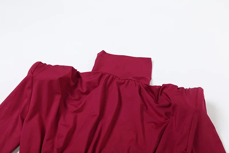 ملابس نسائية خريف وشتاء 2025 موضة جديدة بمزاج عالي الرقبة مطوي الخصر نحيف ملفوف حول الورك فستان بأكمام طويلة للنساء