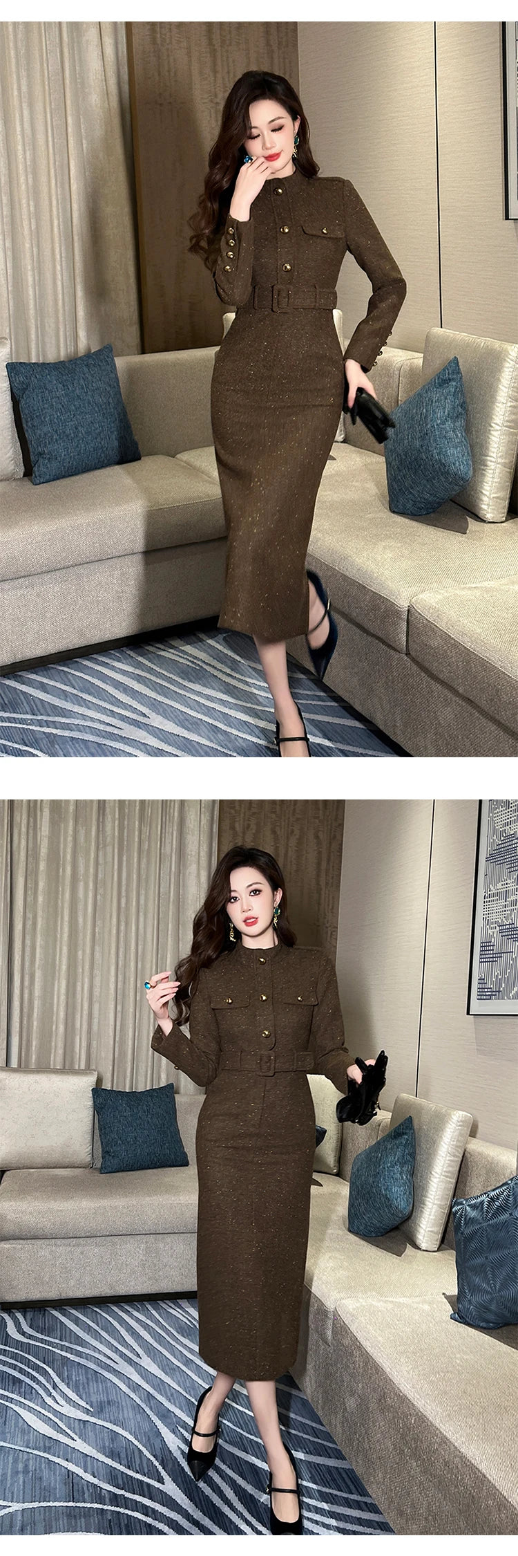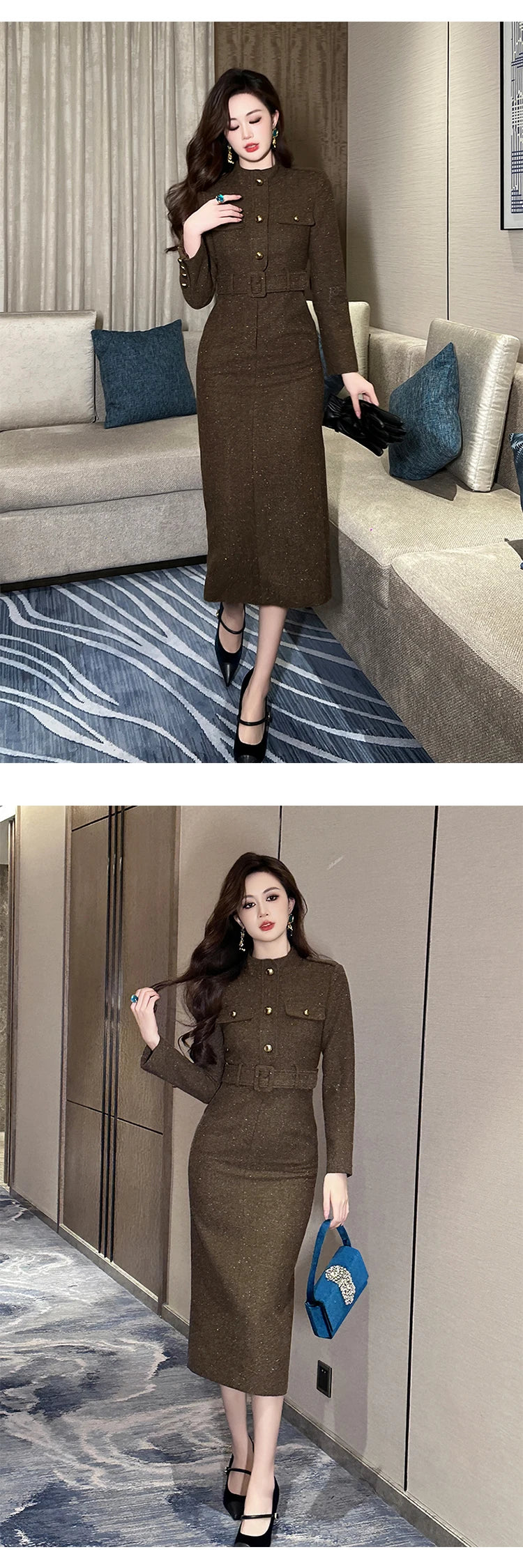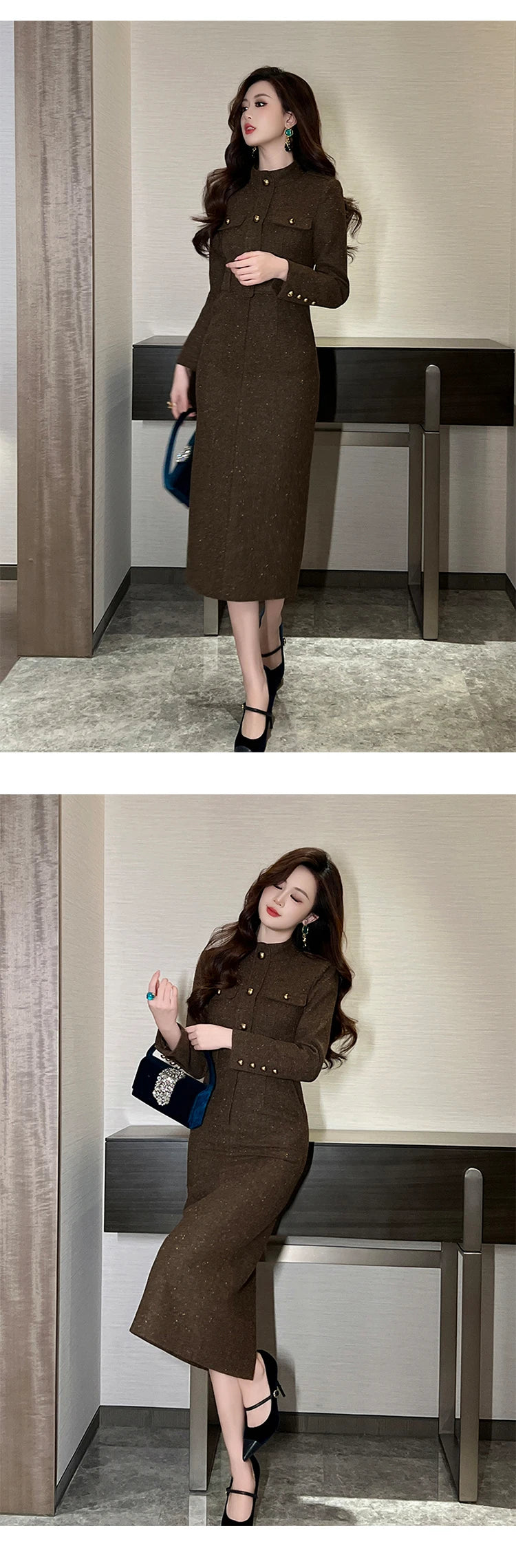 طول الفستان : منتصف الساق