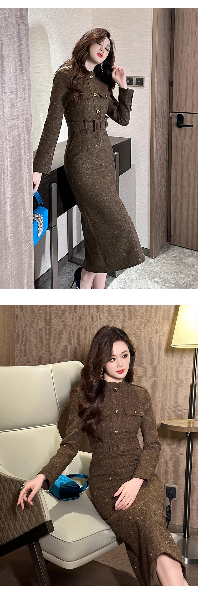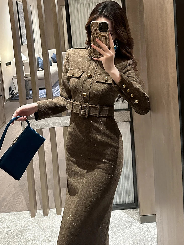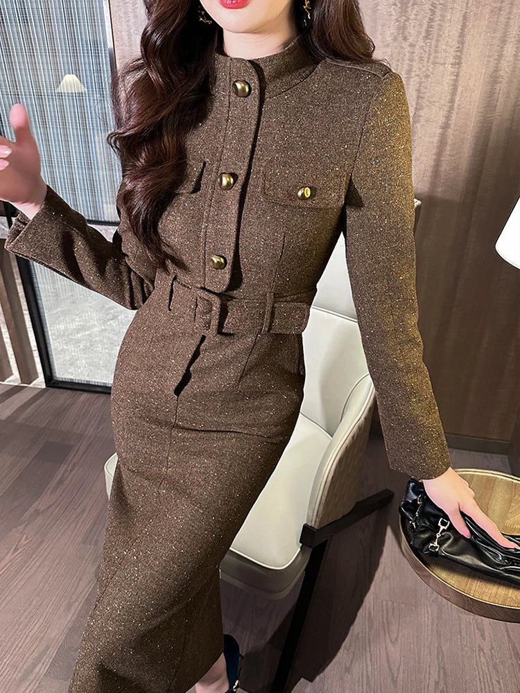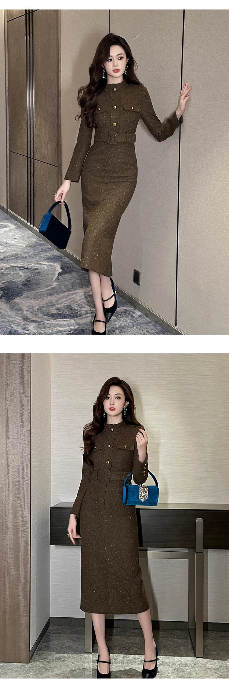 فستان رسمي أنيق للنساء، فستان نسائي احترافي عتيق بحزام صدر واحد، رداء متوسط الطول، فستان حفلات عمل نسائي