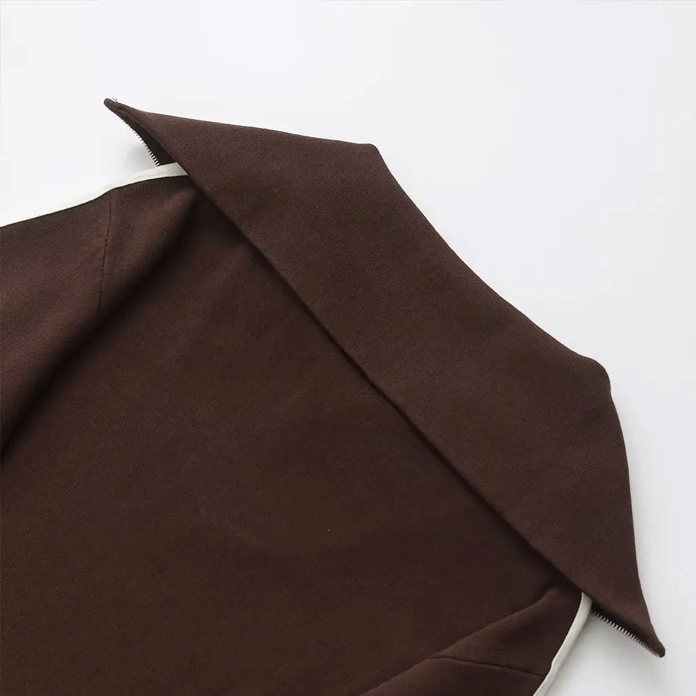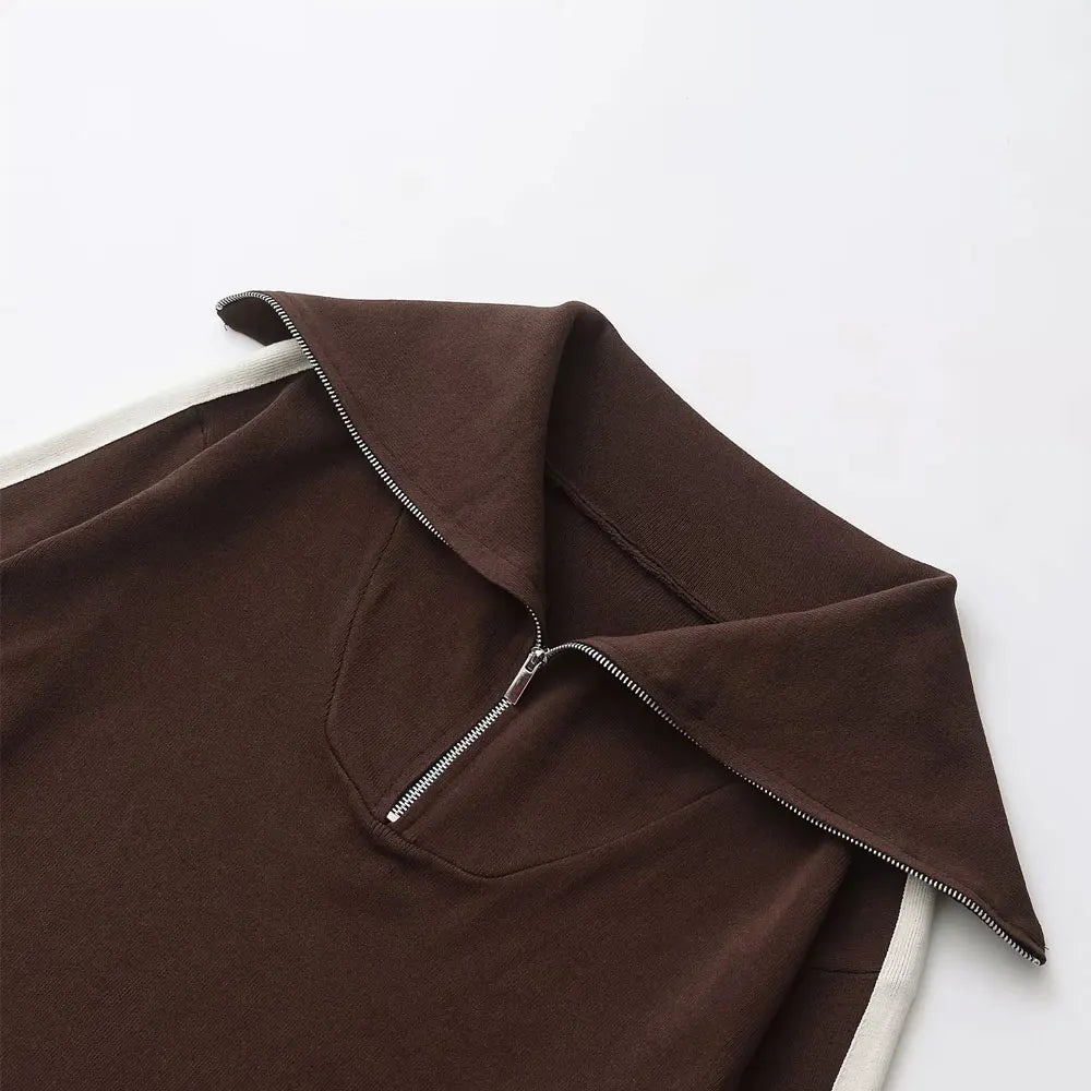 طقم نسائي أنيق من قطعتين، سترة محبوكة مخططة من الجانب وبنطلون مستقيم بخصر مرن عالي، زي نسائي غير رسمي