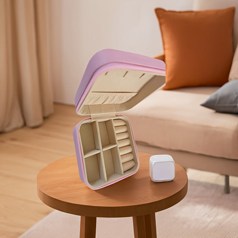 صندوق منظم مجوهرات محمول من ZFOCEAN مزود بسحاب للإغلاق - حقيبة سفر صغيرة الحجم، بطانة داخلية ناعمة، لون بيج/أبيض/أسود أنيق - للخواتم والأقراط والقلائد والأساور - هدية مثالية للنساء وأعياد الميلاد والكريسماس