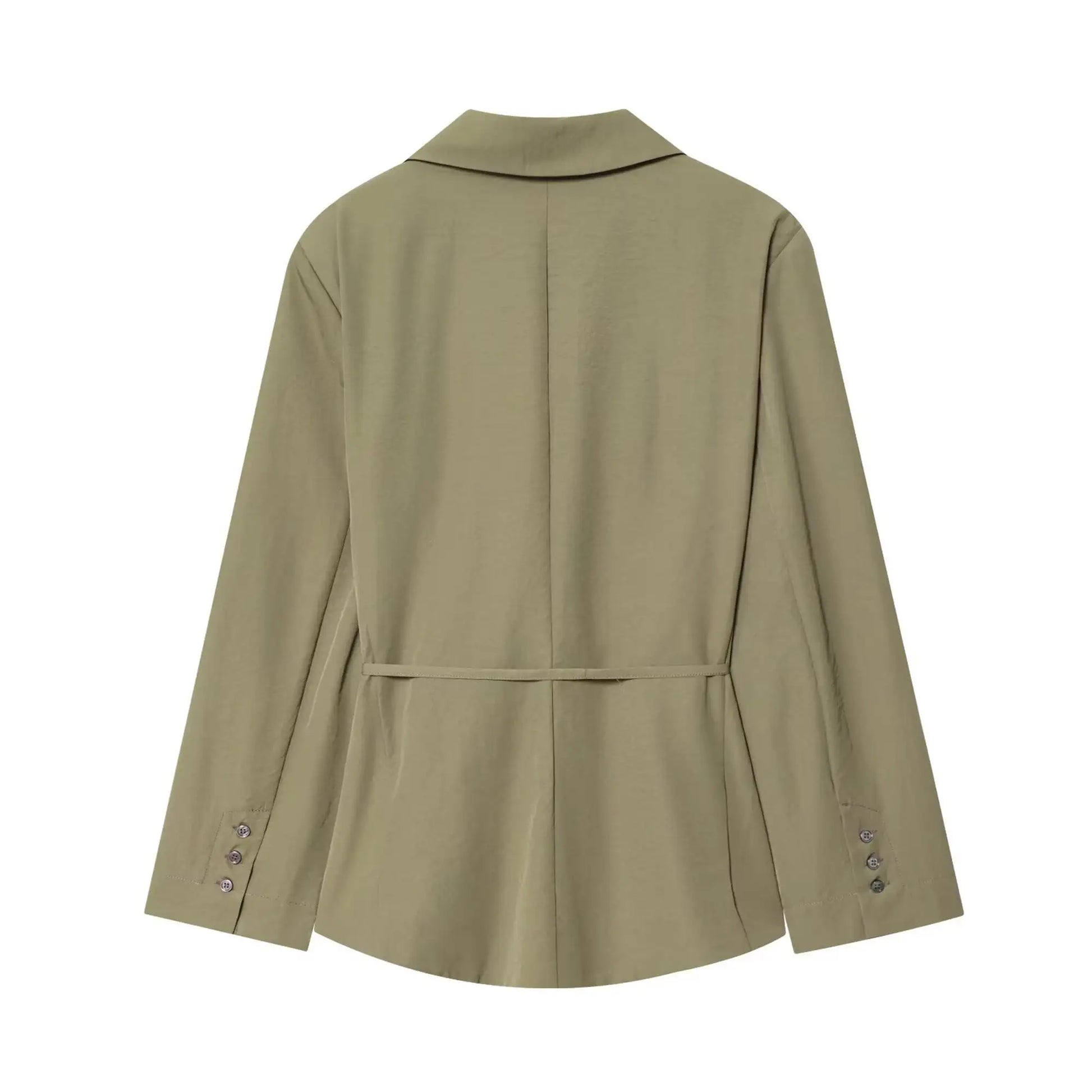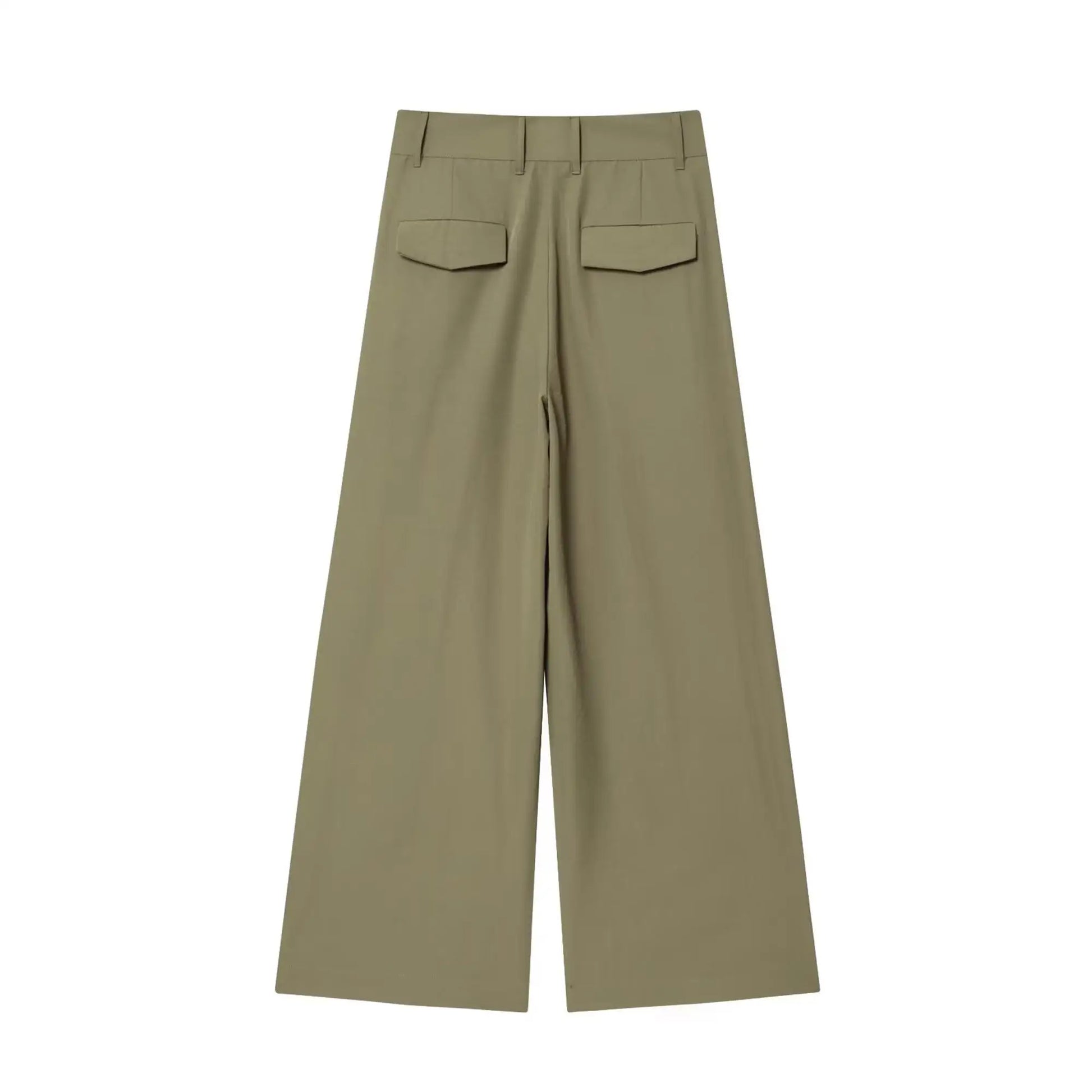 2025 New Women's Fashion Pant Suit V Neck Lace Up Belt Suit Coat High Waist Wide Leg Pants Set Elegant Commuter Office Outfits