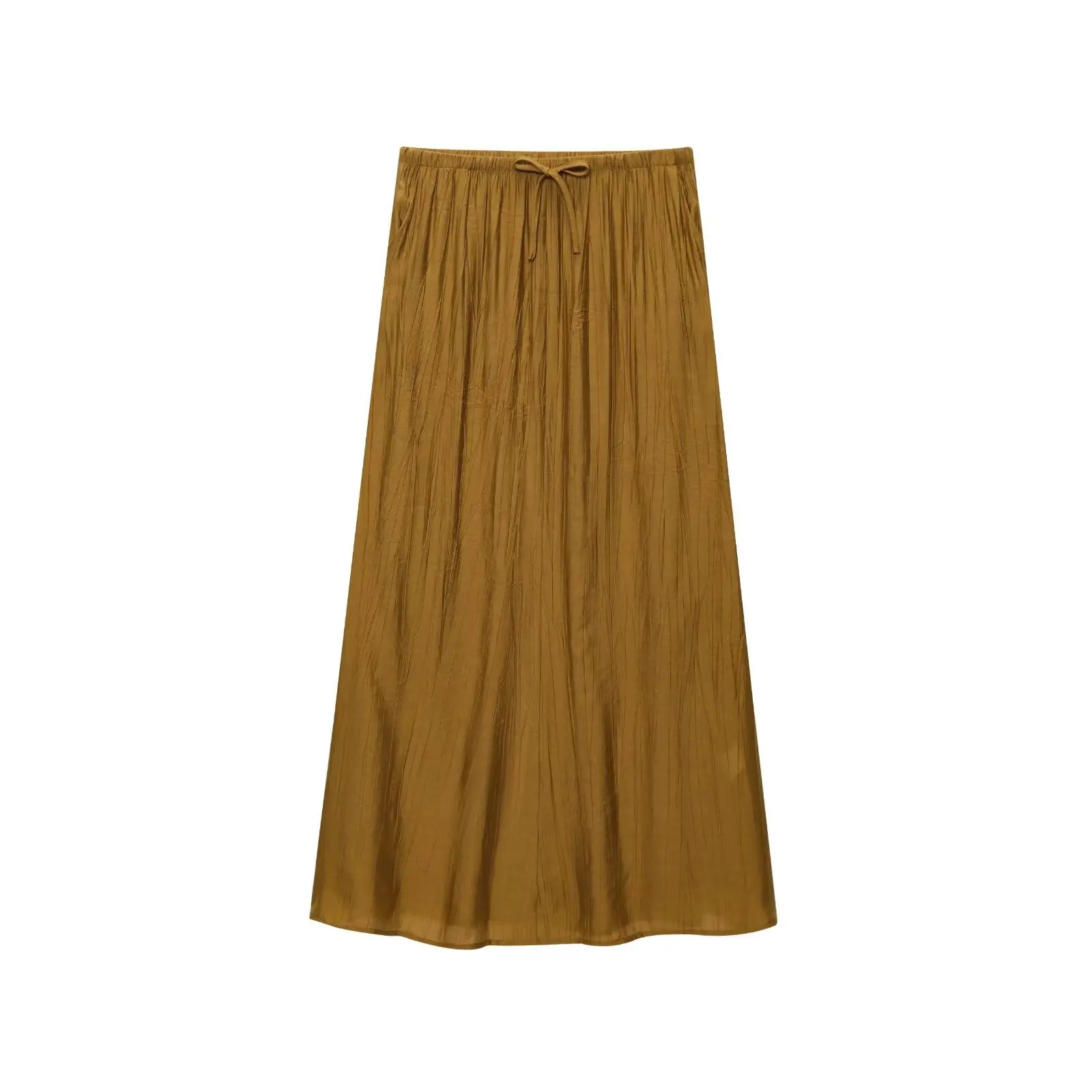 2025 WOMAN fashion European and American style summer new wrinkle effect midi skirt chic bow decorative casual skirt Mujer.