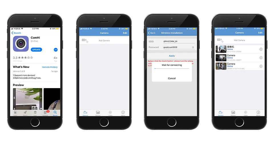Installation instructions:1. Download and install "Camhi " app in app store or Google Play.