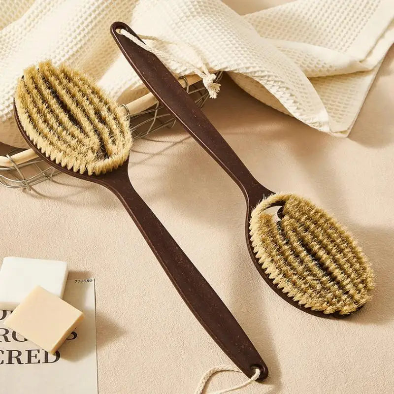 1. This bath brush is made with high-quality boar bristles, ensuring they are soft and comfortable, suitable for all skin types without causing scratches or irritation.