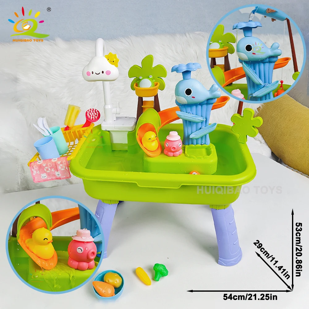 Children's kitchen toys electric fun water play water wash basin fishing dishwashing home role-playing baby early education toys
