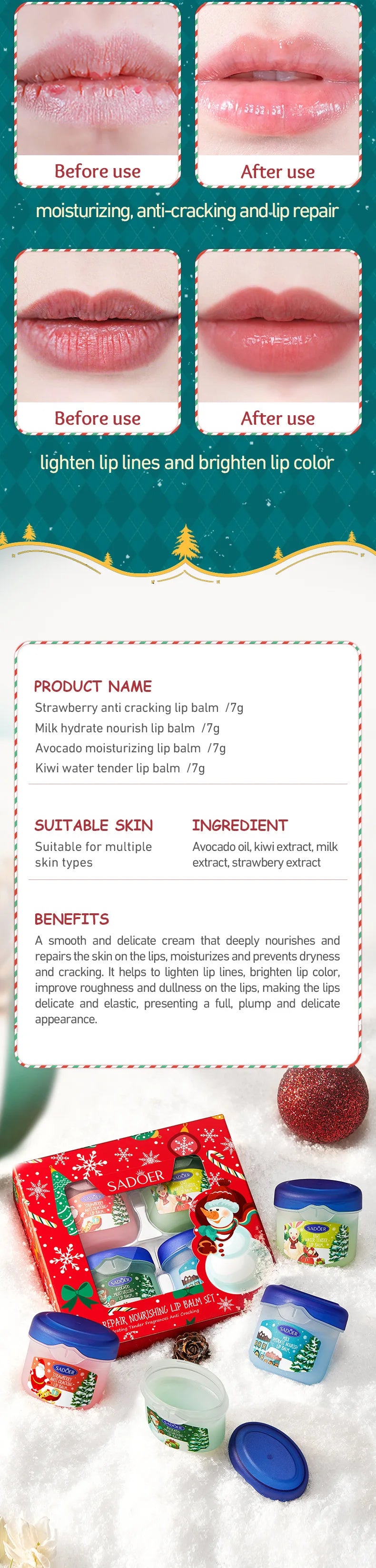 Christmas Gift Box,Lip Balm 4PCS/box Lip Makeup Set, Durable Moisturizer, Christmas Women's Gift Nourishing Lipstick Skin Care