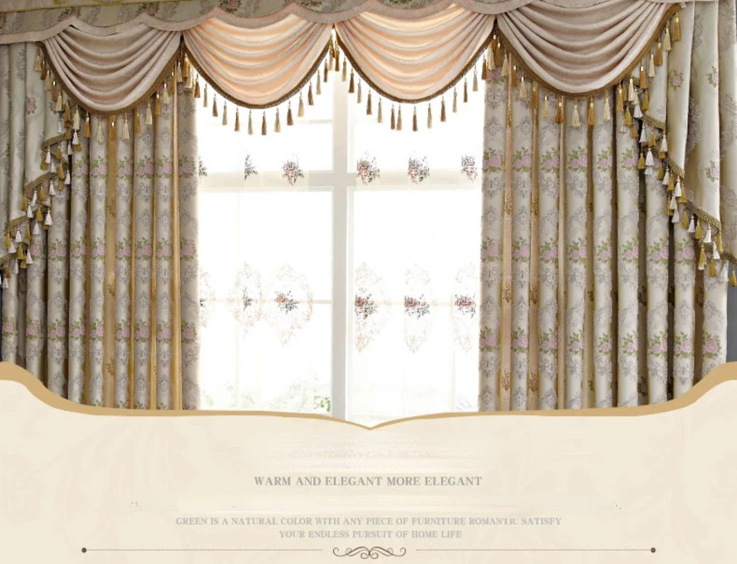 European-style Curtains Simple European Beige Living Dining Room Bedroom Two-story Full-shading Window Curtain Finished Product