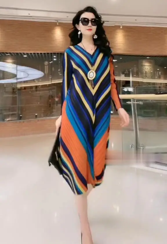 Fashion Printed Women 2025 Spring New V-neck Temperament Long Dress