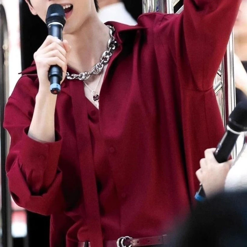 Mens Fashion High-End Party Dance Wine Red Long-Sleeved Shirt 2025 Summer Niche Design Handsome Retro Lapel Y2k Luxury Shirt Men