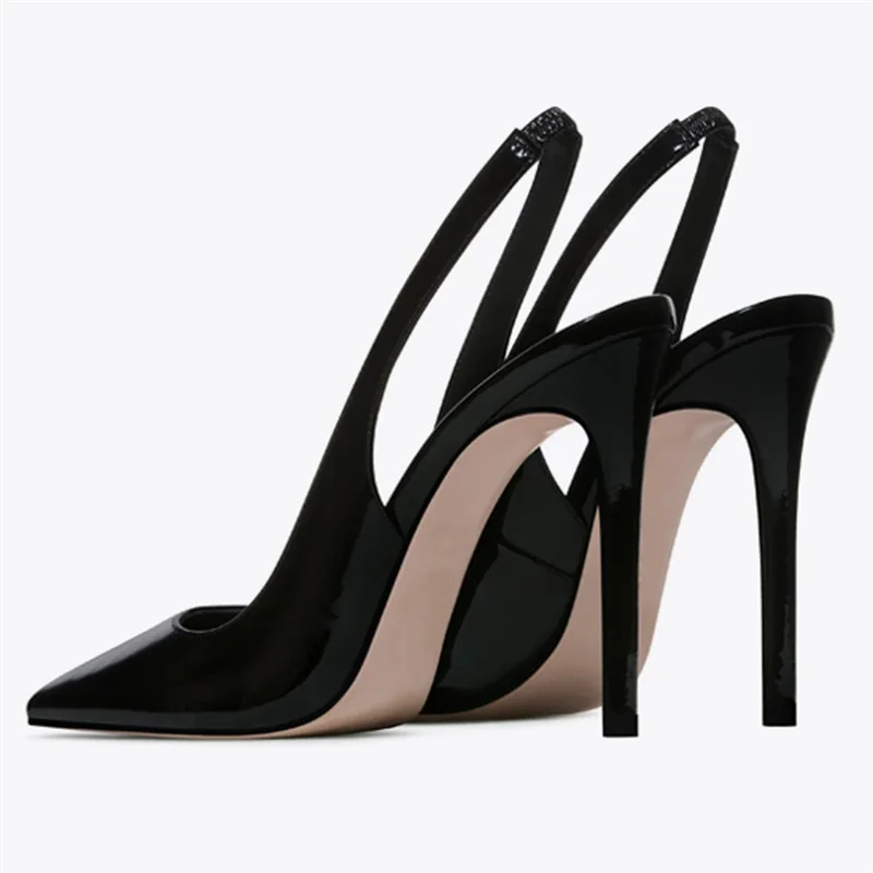Sexy Black Patent Leather Pointy Toe Slingback Pumps 12cm Stiletto High Heels Elastic Band Woman Party Shoes Cutouts Heels QP246