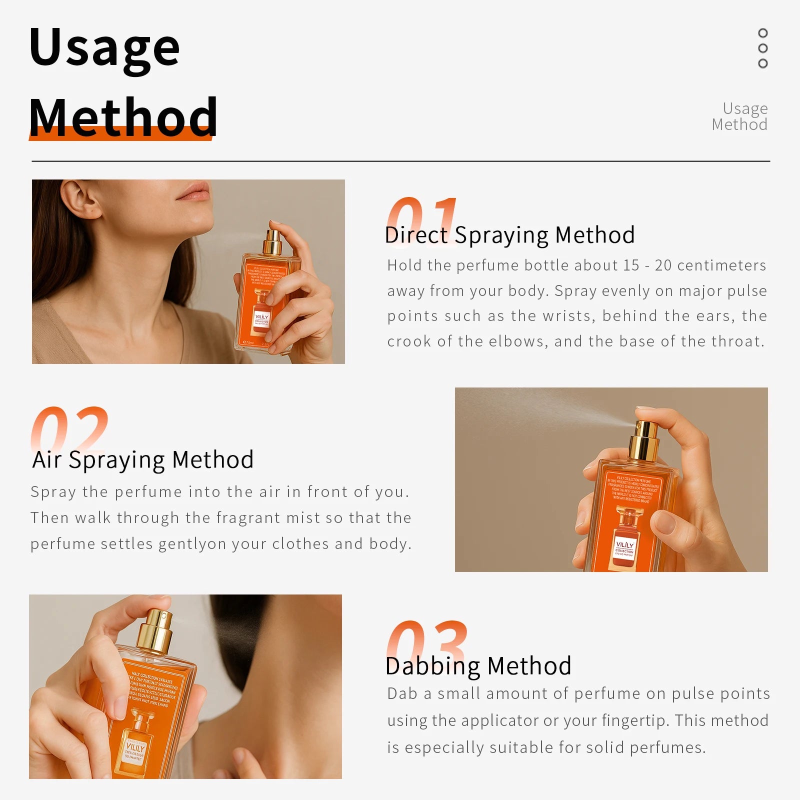 Application: body fragrance,Daily Care,Refreshing,charming fragrance,long-lasting fragrance