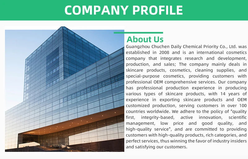 Guangzhou Chuchen Daily Chemical Co., Ltd. is a cosmetics manufacturer with complete testing facilities and strong technical strength.